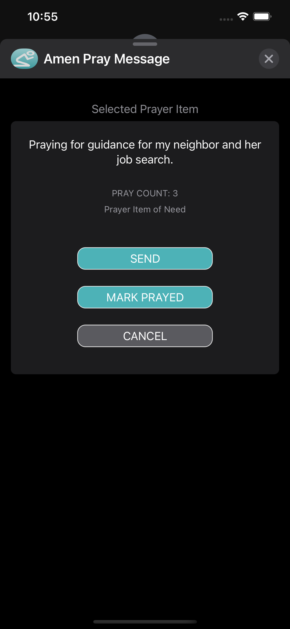 Amen Pray will help you improve your prayer life by easily creating prayer items, organizing them and praying more with the help of reminders. Hold yourself accountable with Pray Health feedback. Mark items private and use a PIN code or biometrics to unlock. Add Prayer Pals to interactively share prayer items. Enrich your prayer life with Add On scripture items or use the example prayers to help get you started!