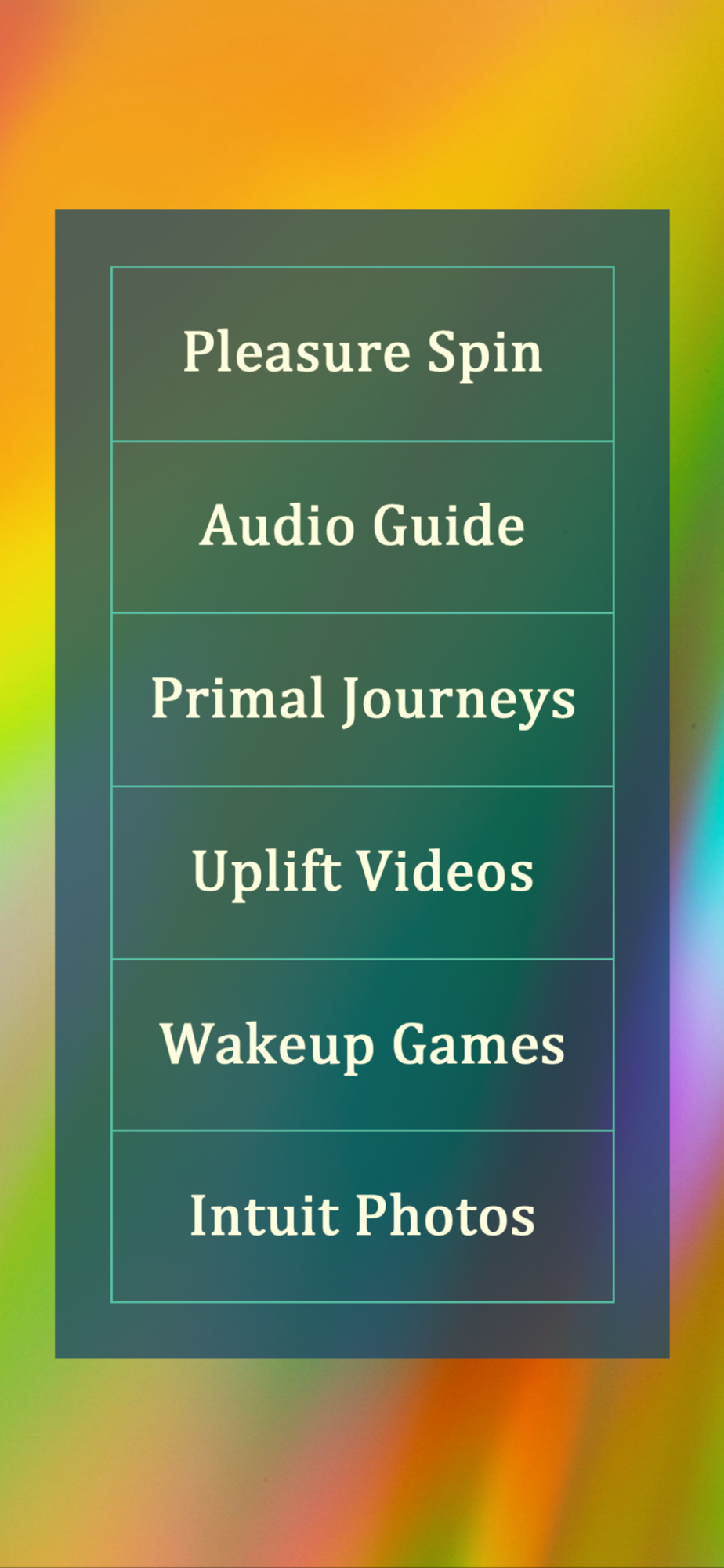 The app includes a detailed user introduction – but you can also just jump in and play around with the programs. There are six primary portals you can enter, each delivering a special type of programming to quickly shift your attention in positive directions.