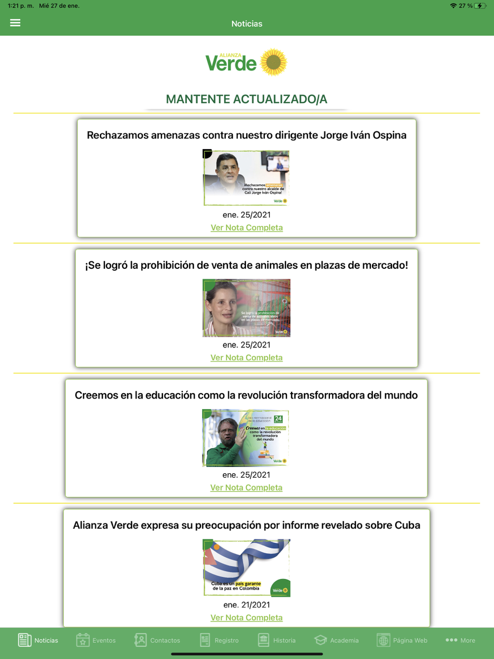 Esta es la APP oficial de la Alianza Verde. Aquí encontrarás contenido único que te permitirá estar informado(a) de nuestras actividades, noticias, hechos relevantes del país y nuestro partido.