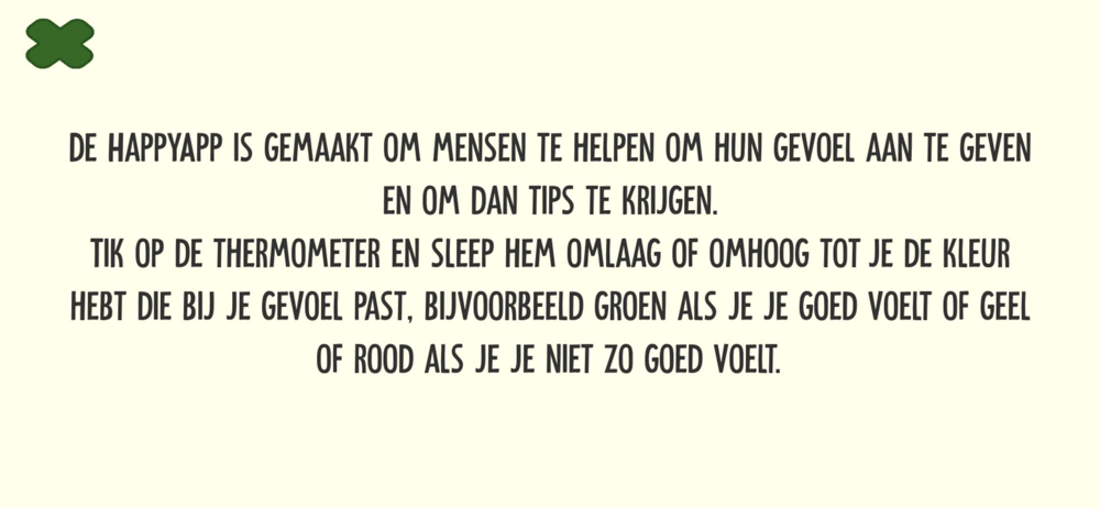 Mensen kunnen met een vinger over de stress-thermometer om zo te bepalen welke kleur de thermometer wordt. Als mensen hun vinger los laten dan geeft dat aan hoe je je in de basis voelt. Daarna kunnen ze hun precieze emotie aangeven bijvoorbeeld of ze boos of verdrietig zijn. Daarna krijgen ze tips om zich weer beer te voelen.