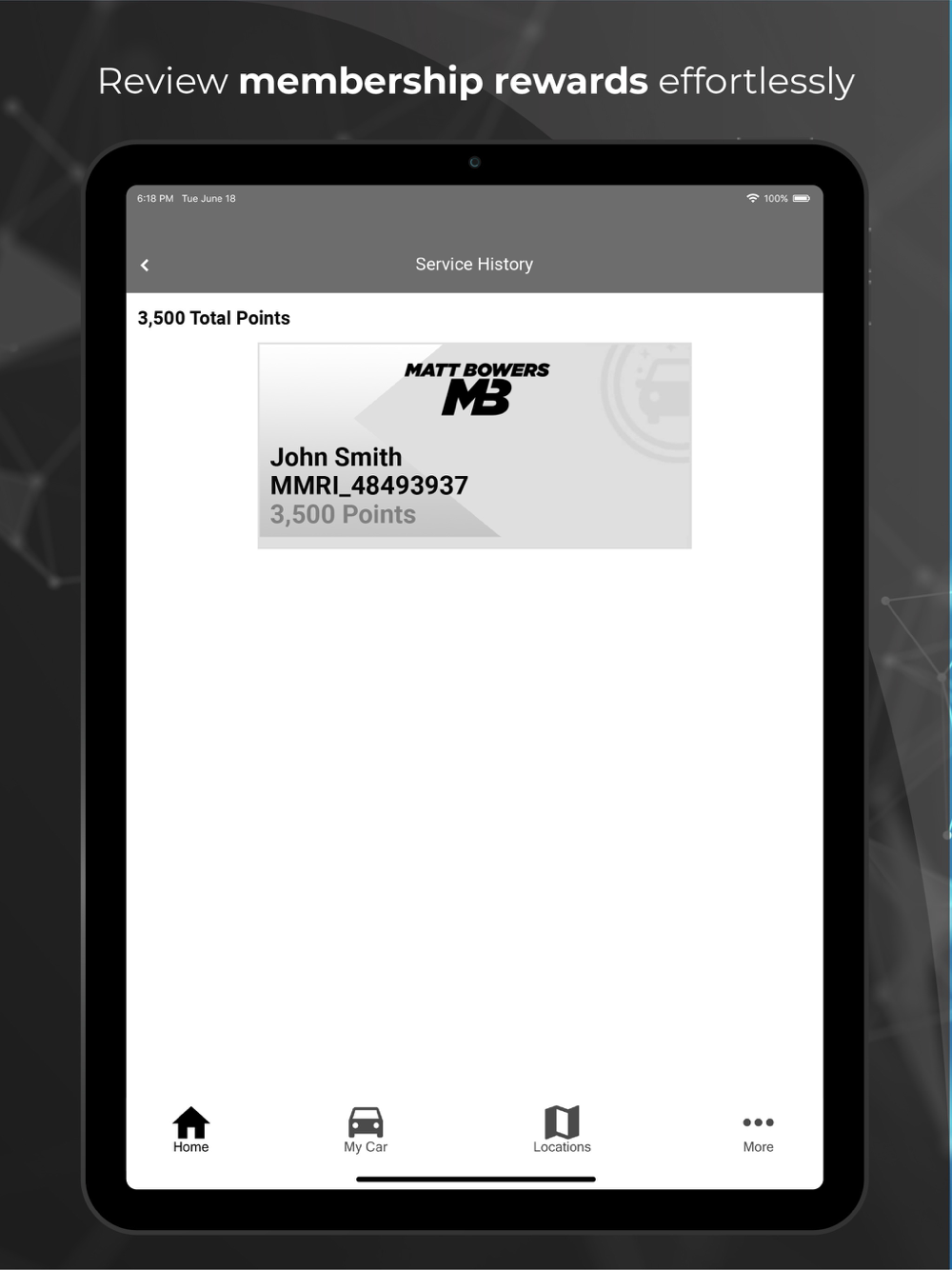This app allows you to view and track your participation in the dealership's loyalty program and to view the service history of your vehicle. In addition, you are eligible for exclusive deals on service made available only to Mobile App Users!