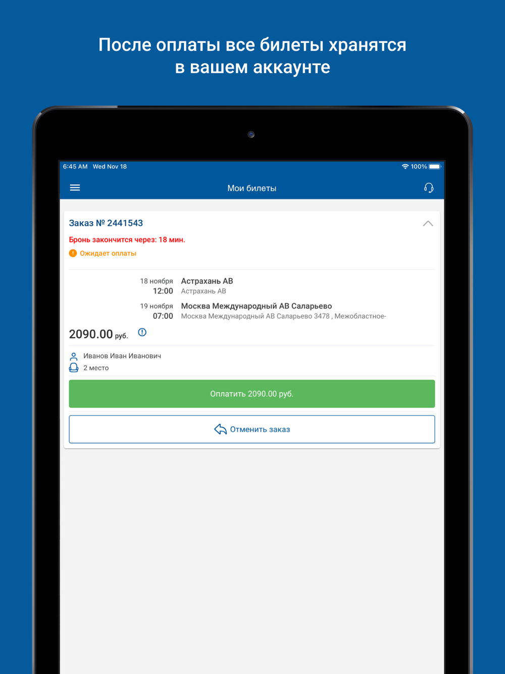 - автоматическая подстановка данных пассажира при последующих покупках электронных билетов