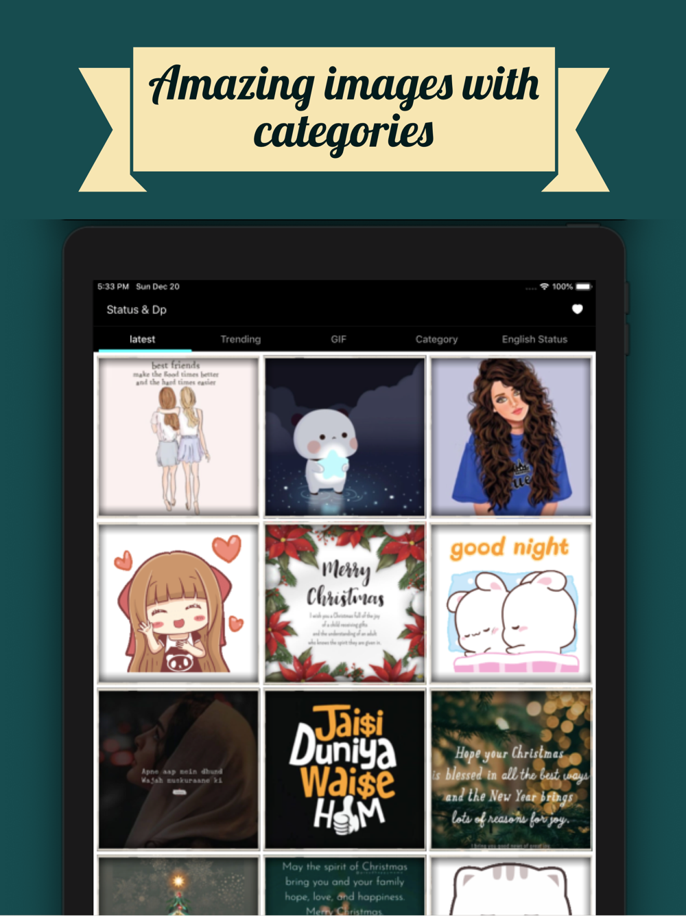 We bring to you the most popular DP and Status for all your social networking accounts. There is a new trend of keeping famous quotes as DP Status. We have differentiated images into categories so that you can quickly find the images. you can share the images with your friends from the App itself .