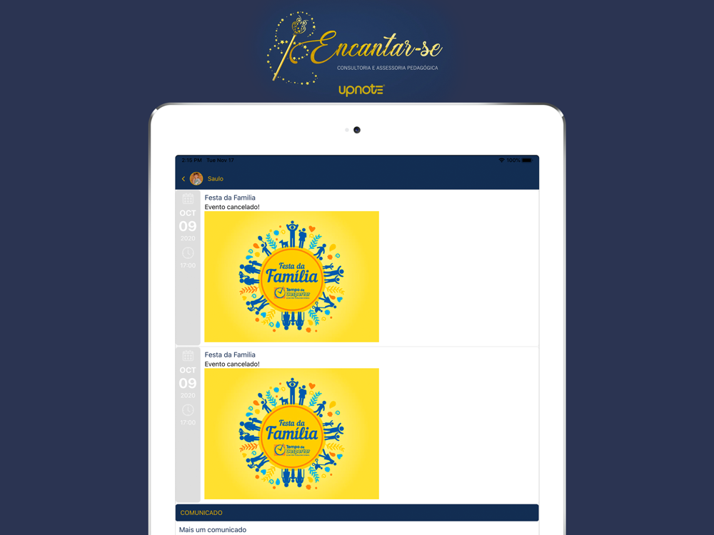 O aplicativo do Encantar-se é destinado aos alunos e seus responsáveis, como forma de se manterem informados sobre o calendário, eventos, comunicados e demais notificações da escola.