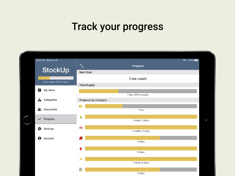 -Personalize food storage goals based on your household size and what you eat (including custom categories)