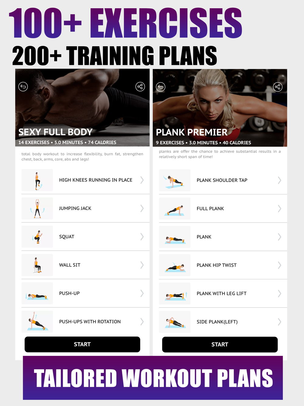1. Choose whether want to follow workout challenges or customized plans for various levels and needs.