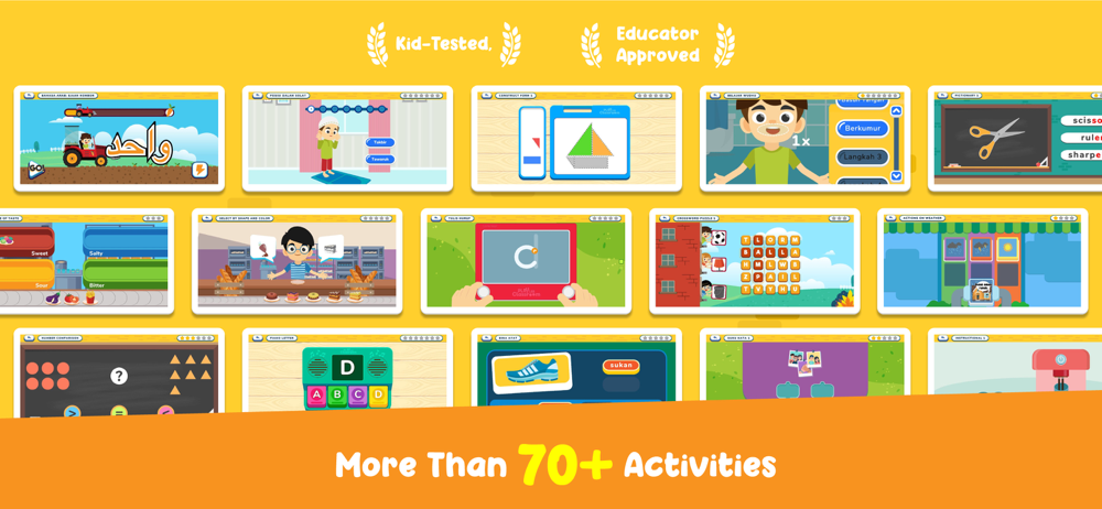 There are 5 subjects in this app which is Bahasa Melayu, English, Mathematics, Science and Islamic Education and each subjects got 3 levels starting from the easiest to the hardest according to the child capability and performance.