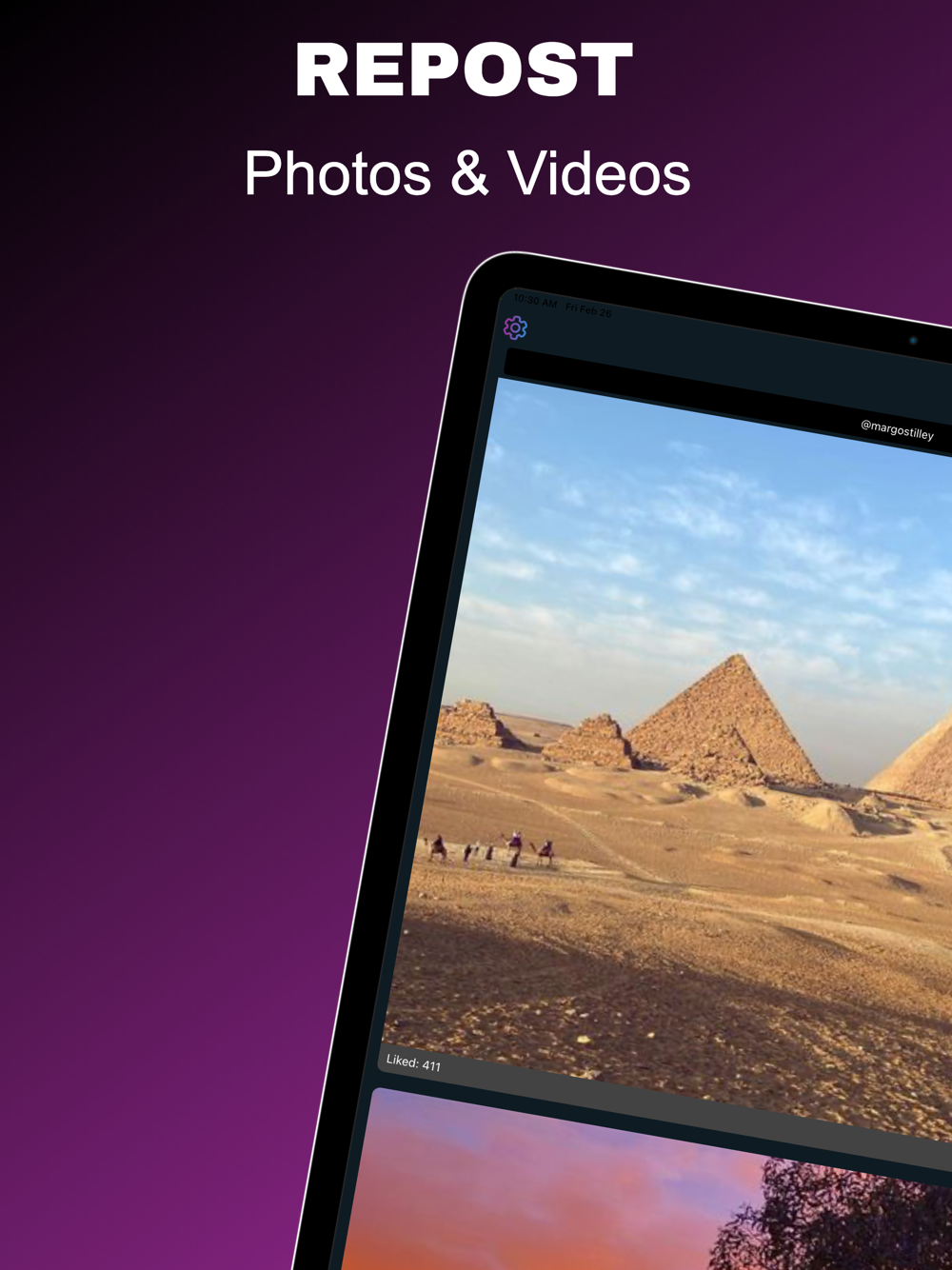 Bạn sẽ không cần phải thực hiện chụp màn hình của ảnh trong Instagram nữa. Repost+ for Instagram cho phép bạn repost video Instagram cũng như hình ảnh. Bạn sẽ có thể repost video và hình ảnh yêu thích của bạn trong Instagram và sẽ đưa tín dụng vào tài khoản Instagram bạn đang reposting từ. Bạn cũng sẽ có cơ hội để thiết lập nhắc nhở cho reposting video và hình ảnh yêu thích của bạn sau này.