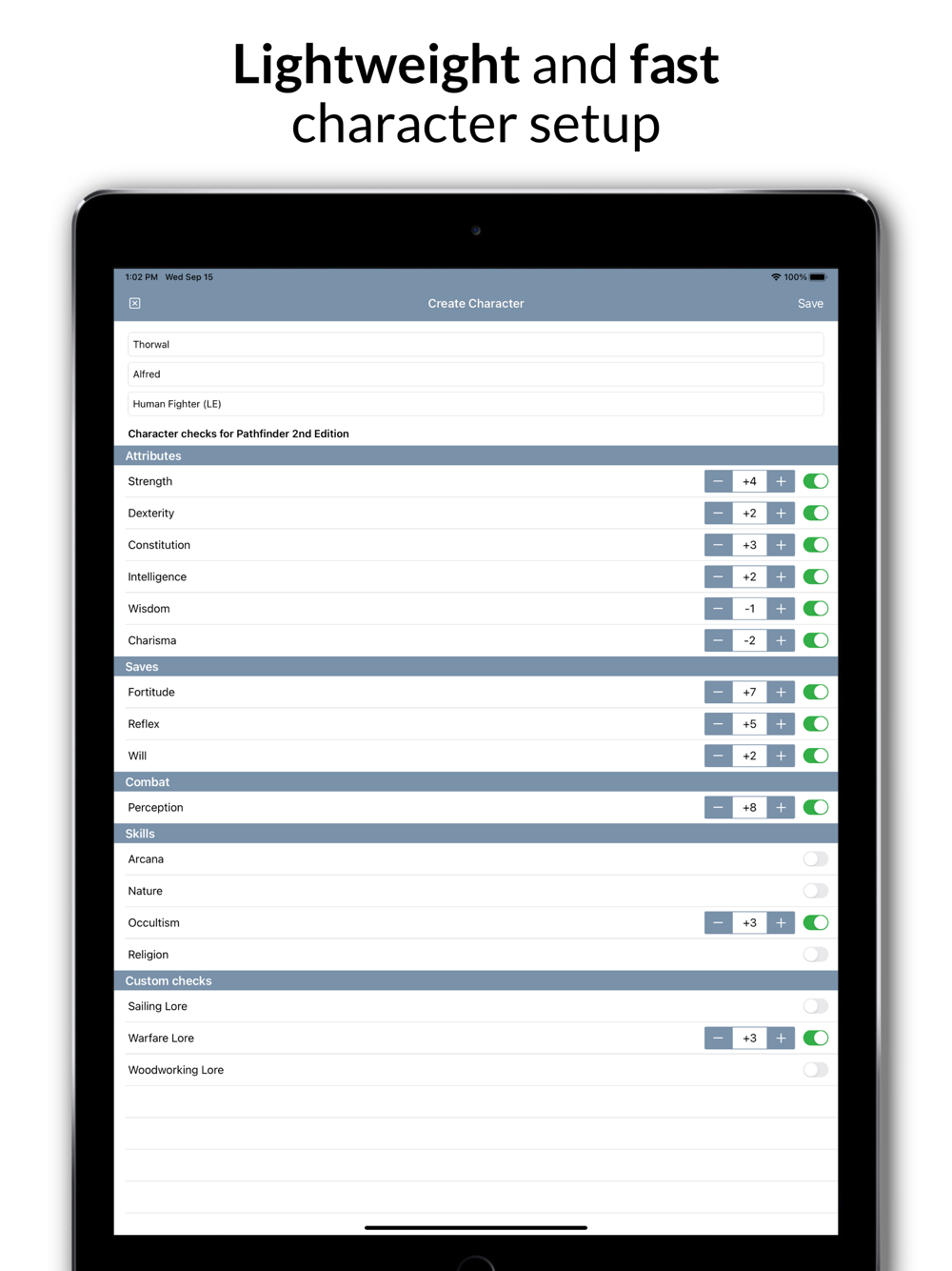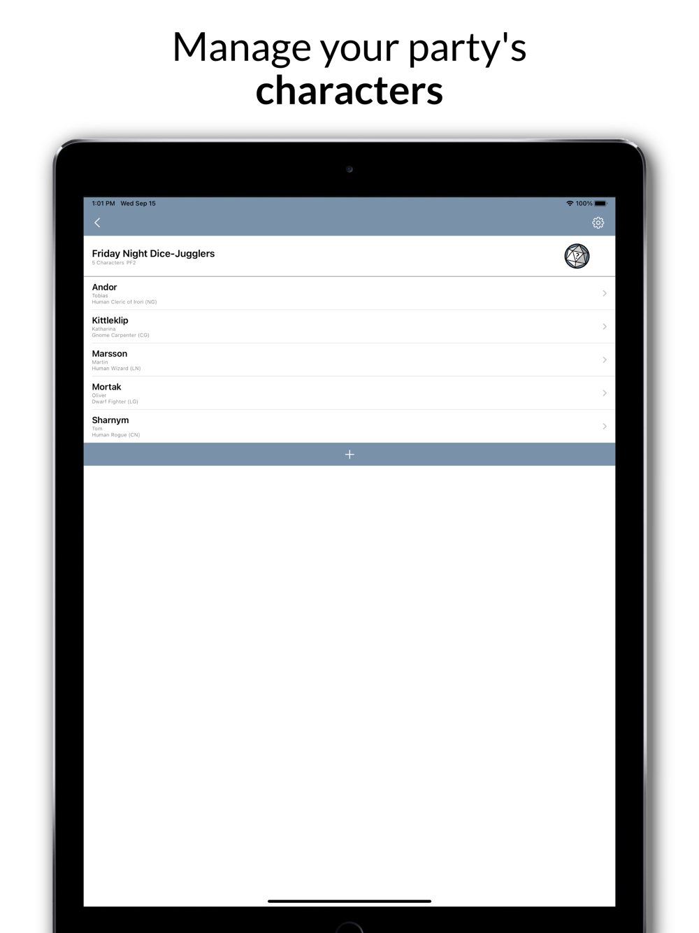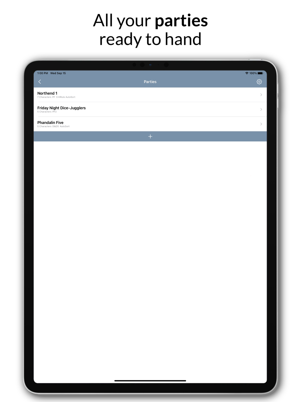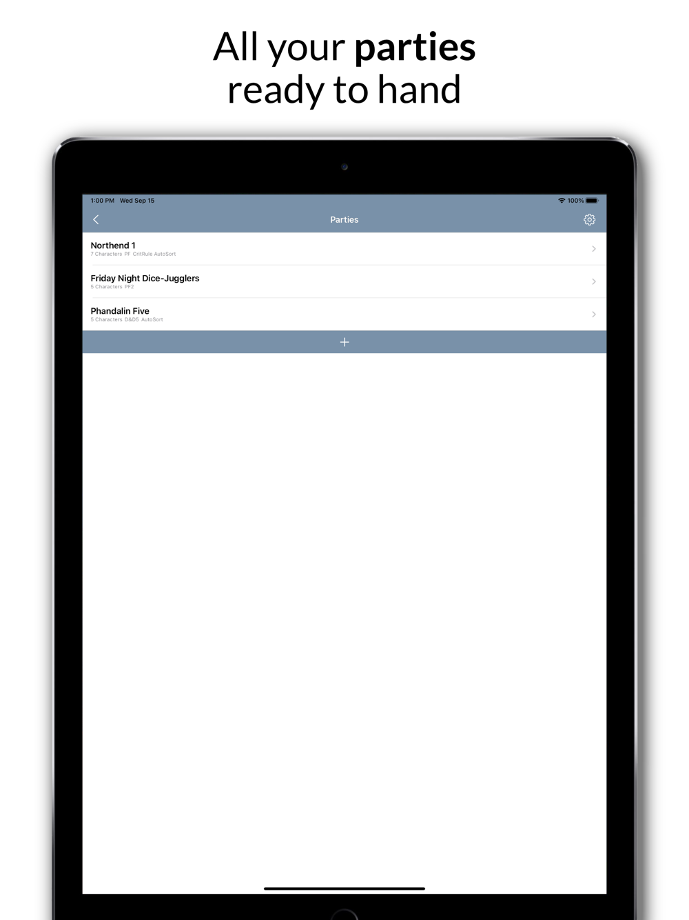 - Lightweight app design: Quick creation and setup of parties and characters.