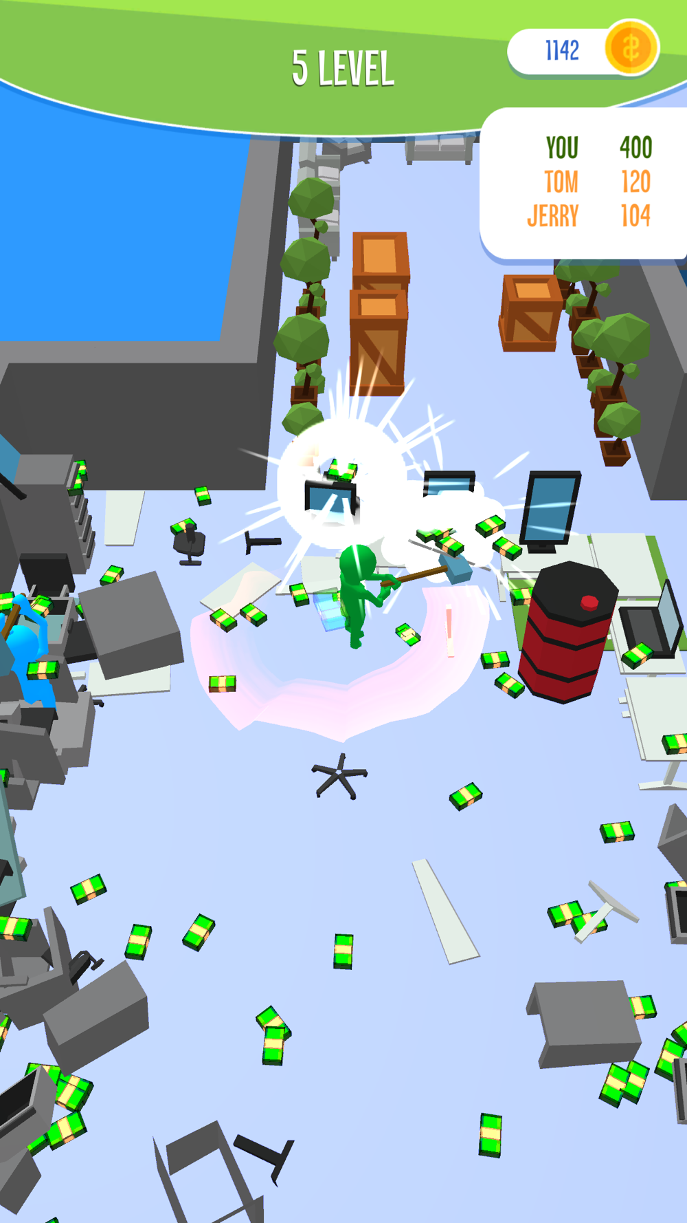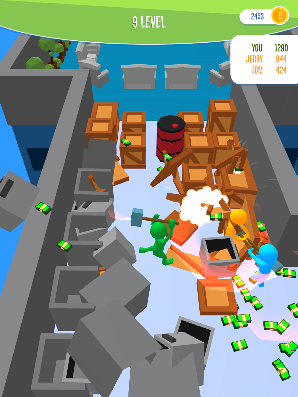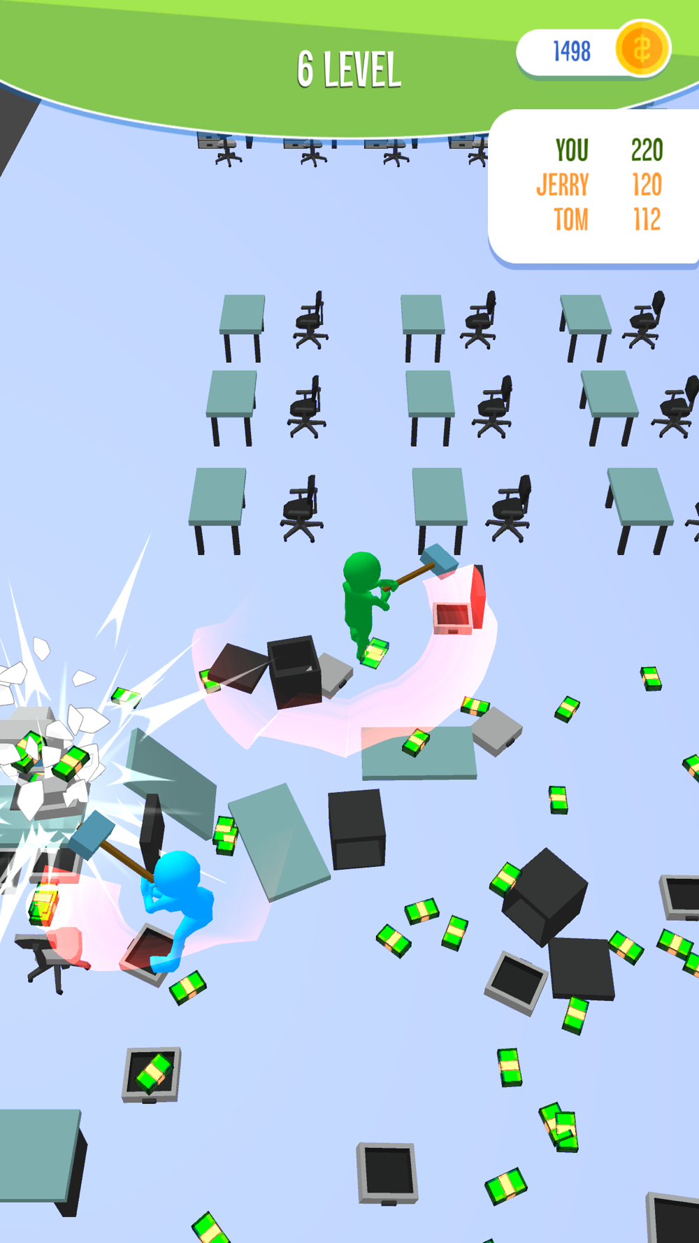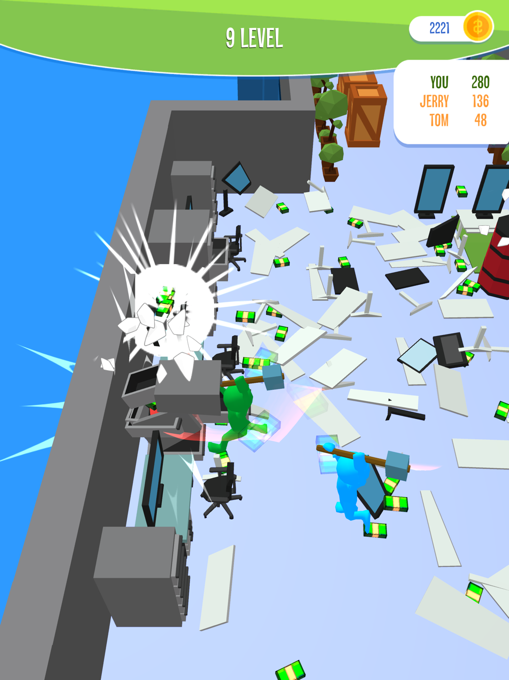 Take a huge hammer in your hands and smash the entire office. Smash tables and computers! Destroy sofas and TVs! Destroy Master has tons of unique, hand-built levels and tons of fun. Destroy the entire location in a race with rivals and score as many points as possible. Avoid explosive barrels!
