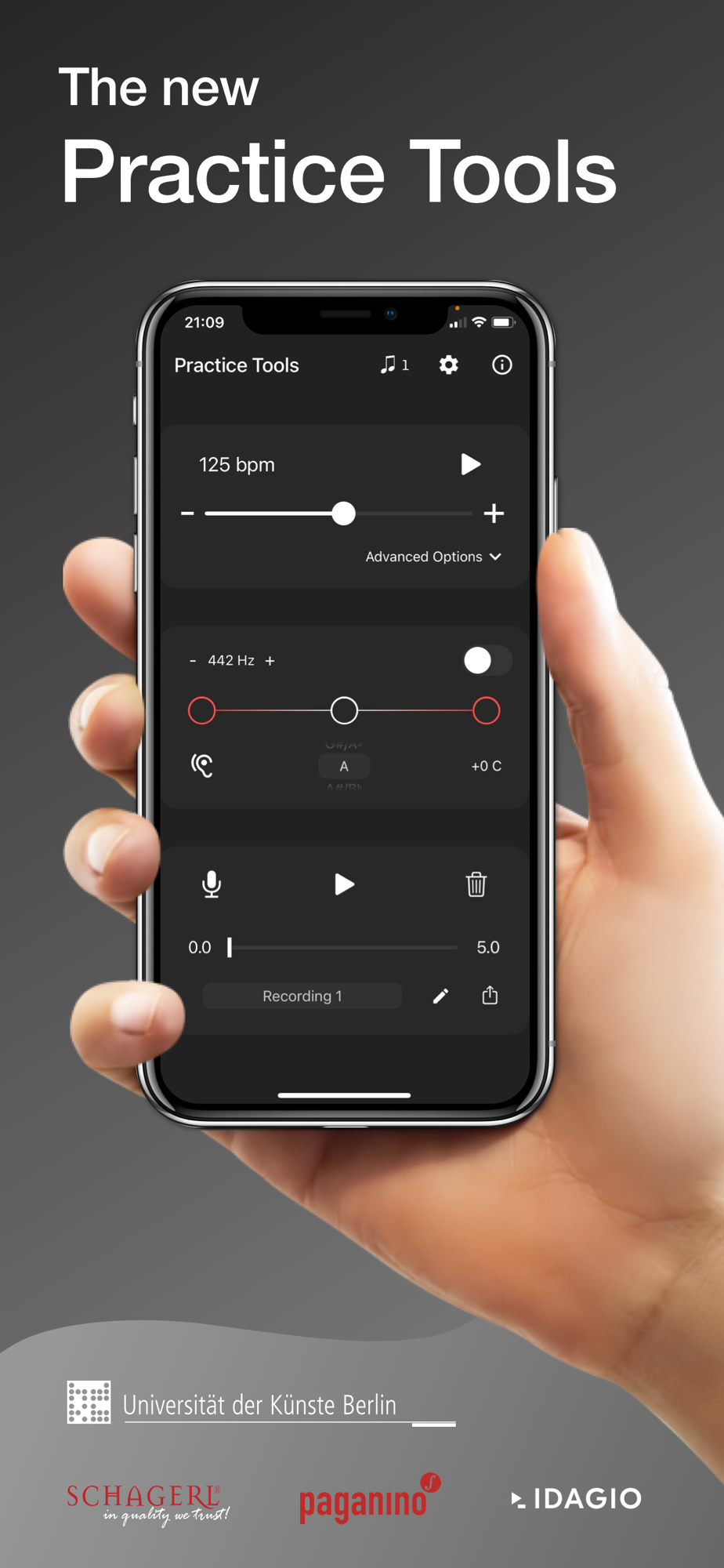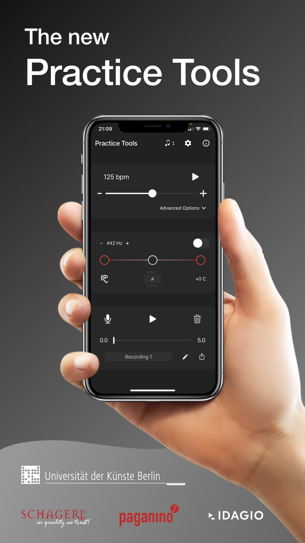 No more switching between Metronome, Recorder or Tuner App! Revolutionize your practice and benefit from the advantages of using Practice Tools.
