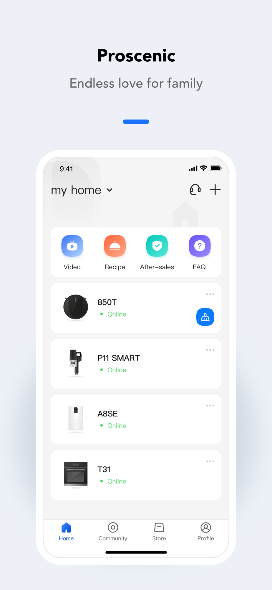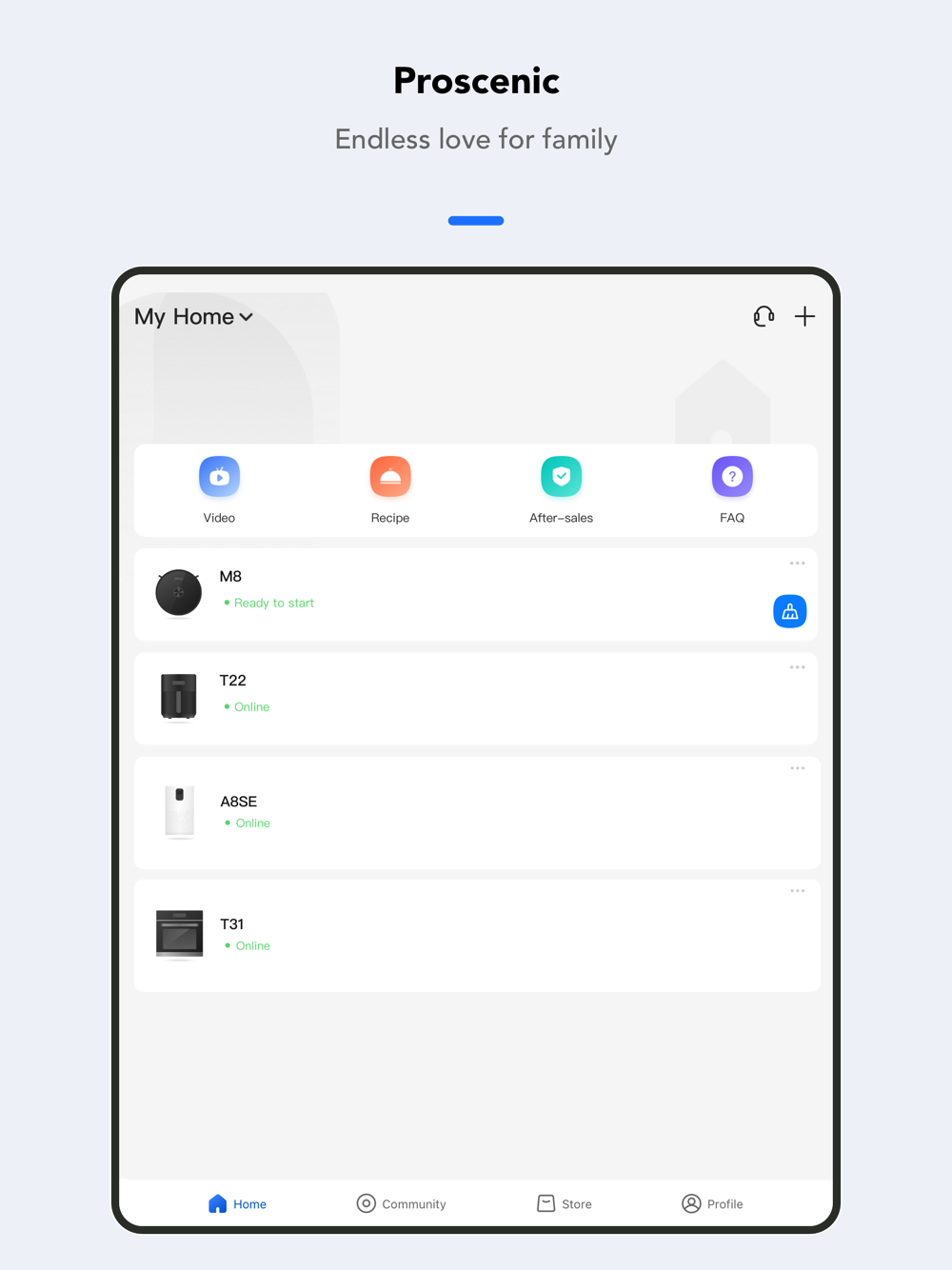 The Proscenic App is a mobile phone application that connects Proscenic smart products. You can control the functions of the product and monitor your product in real-time through the application. Here, you can control the product anytime and anywhere, and you can also streamline communication between smart devices. Intercommunication makes the product more portable and smart during use.