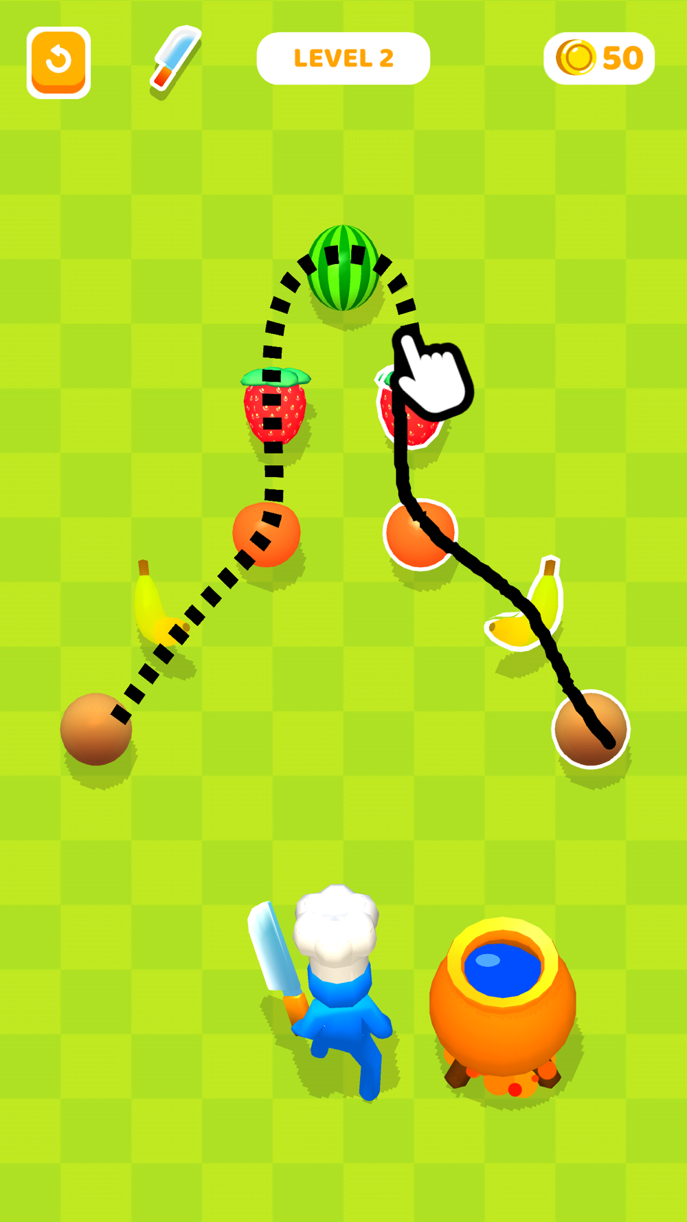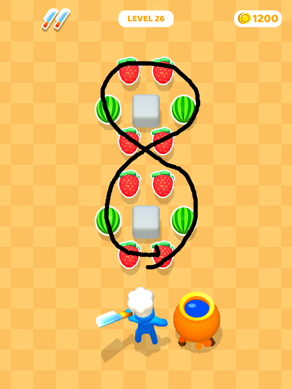 Draw your path, avoid obstacles, collect keys and slice every fruits!