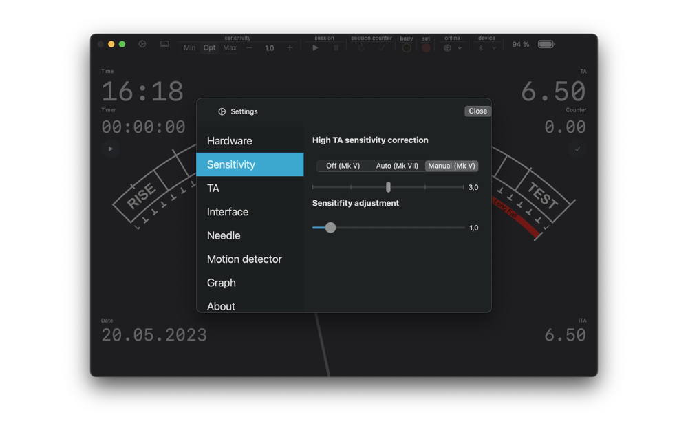 Theta-Meter standard e-meter app. Theta-Meter e-meter hardware can be connected to this app using Bluetooth LE 4.0 (or higher) or Wi-Fi connection. This app measures the electric resistance of the object, connected to Theta-Meter e-meter electrodes. This app is not intended to diagnose, treat, cure, or prevent any disease or medical or therapeutic use. Using a needle indicator, this app shows the dynamics of changes in the electrical resistance of an object connected to the Theta-Meter device.