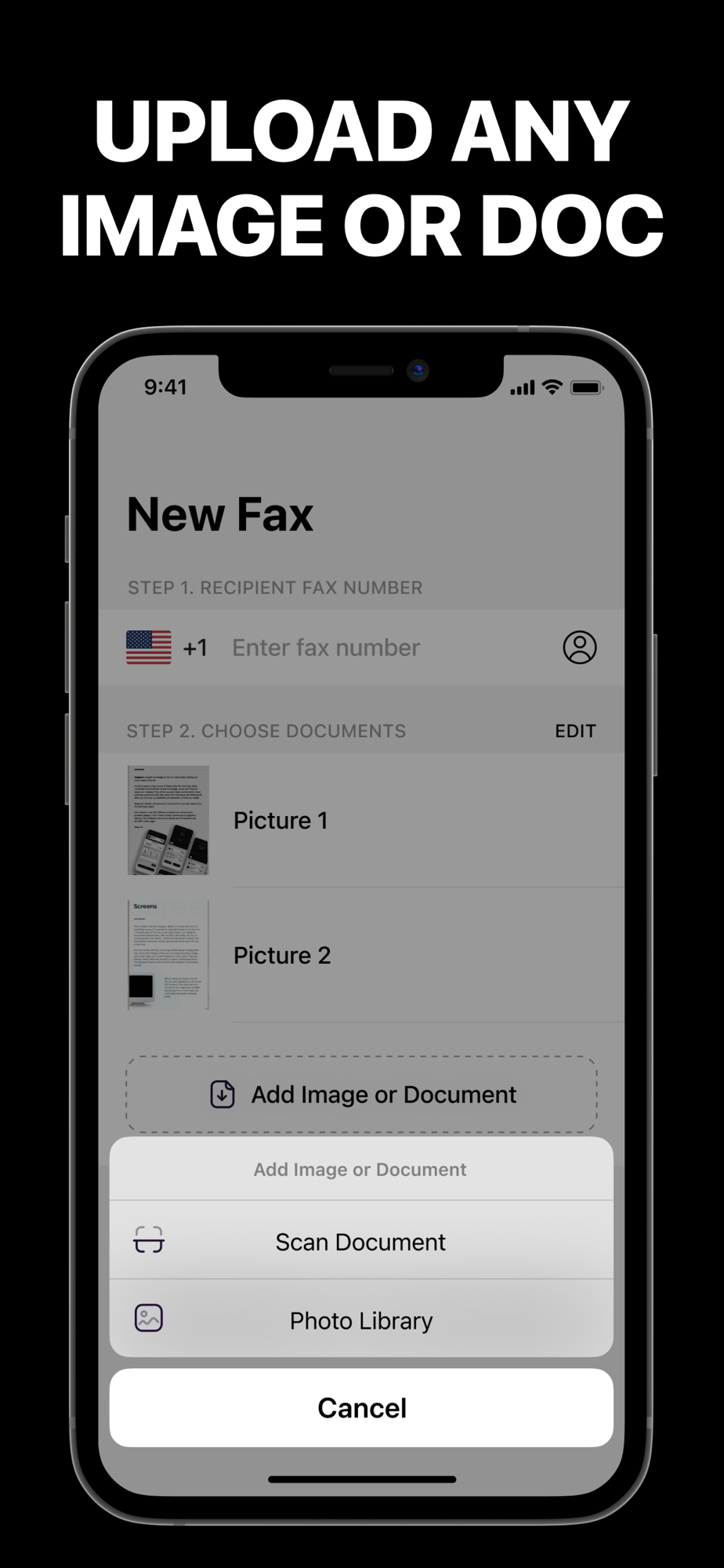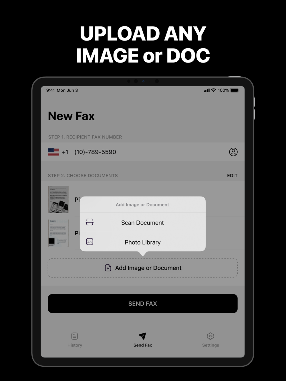 Scan any document with an advanced integrated document scanner app and fax them anywhere in the world in just a few taps!