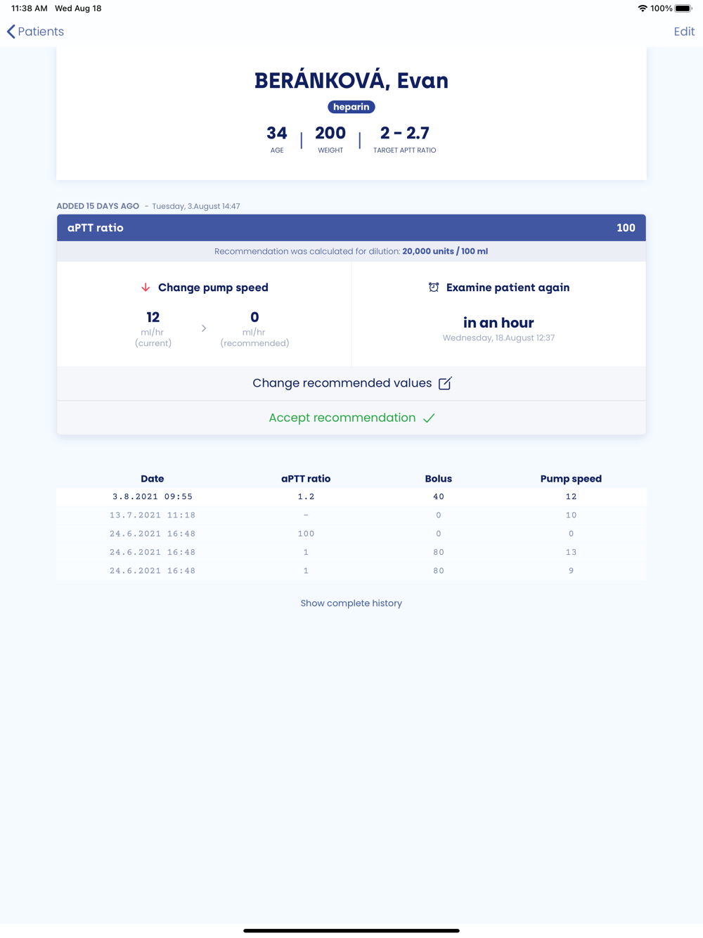 The app stores anonymous data in the cloud and deploys machine learning algorithms to find the optimal dosage. App is easy to use and ready to integrate into any hospital IT systems through APIs.