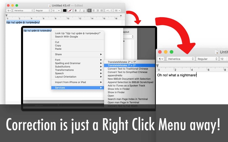 Select any text, right click, > Services > TranslateMistake, and save your tens of seconds of typing that would've been useless otherwise*.