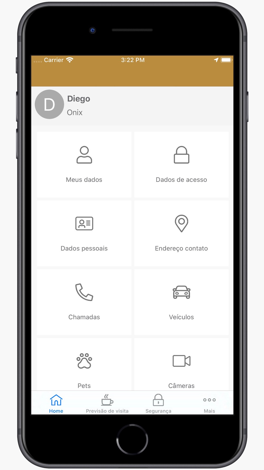 Possibilidade de convidar os amigos, visualizar as câmeras, abrir as portas e ser notificado quando seus amigos chegarem no Condomínio.