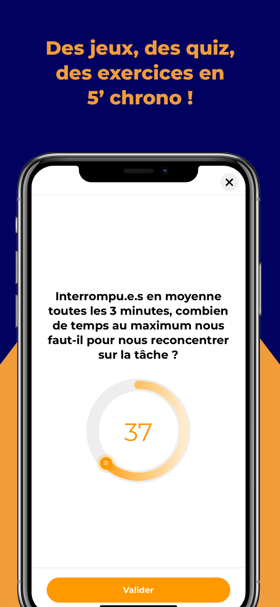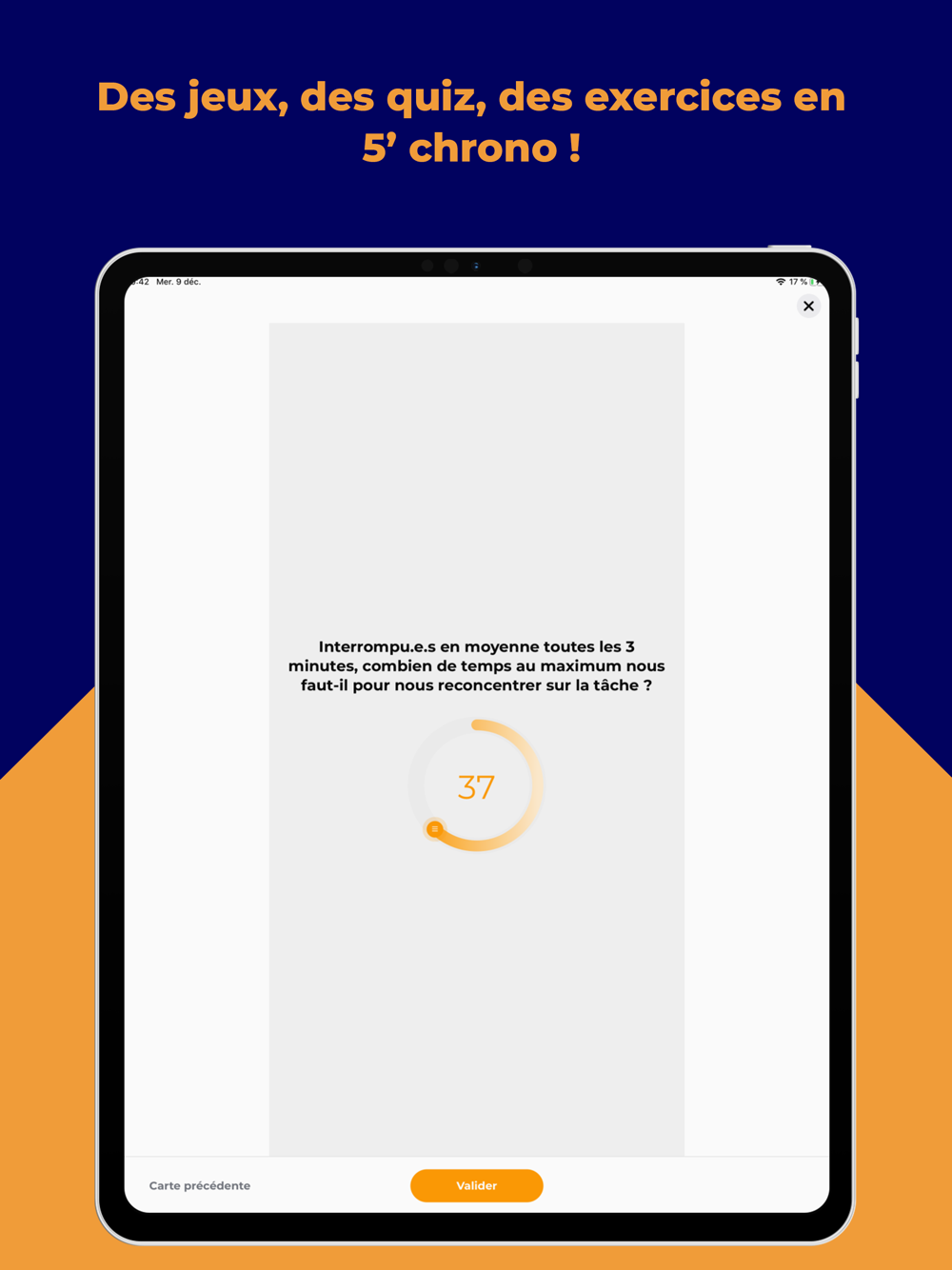 > Des exercices courts, des jeux, des quiz. La plupart ne prennent que 5 minutes et les premiers bienfaits arrivent très vite !