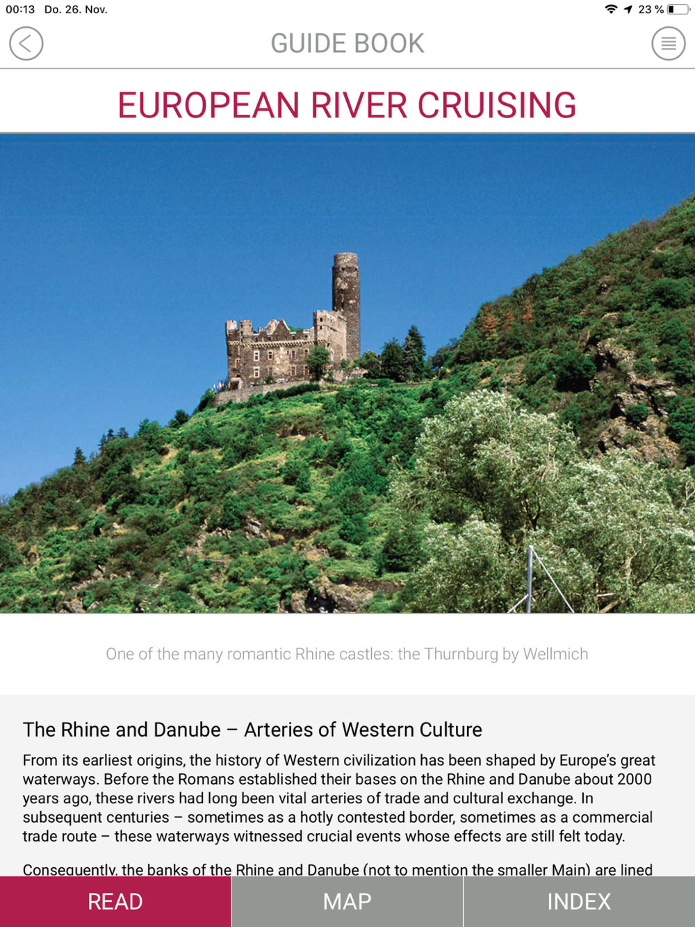 All River-Cruise Guides are available as InApp-Purchase and will enrich your holiday experience because they contain: