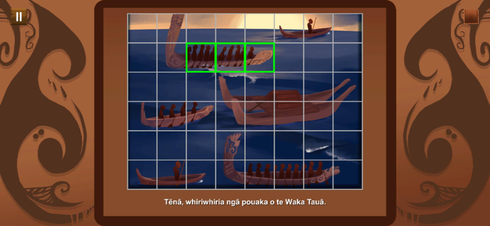 Nukutawhiti starts on the island of Hawaikii where the player must navigate through each section of the island. They will meet people that will offer learnings and they will collect important information on preparing for the journey to Aoteroa. The resource features learning puzzles with the final puzzle being about navigation using constellations while guiding their waka.