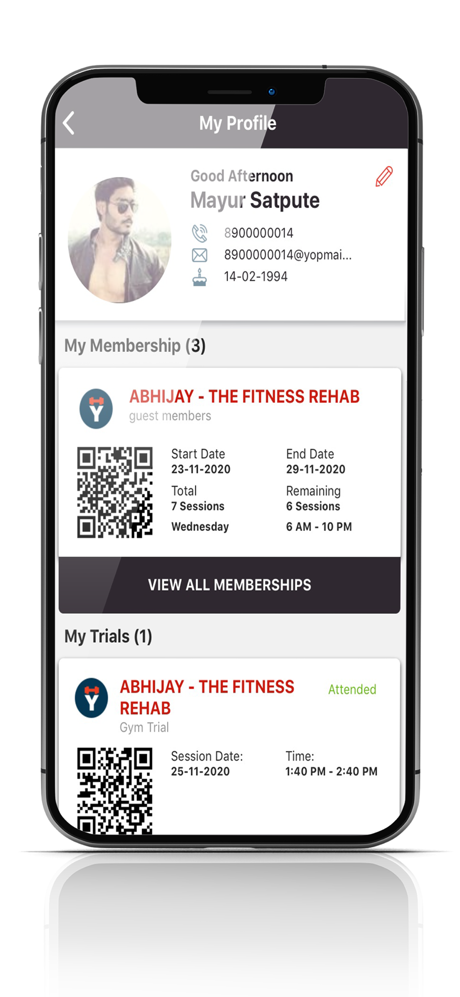 The app is a great way to schedule group activities and personal training sessions. Now don't miss your favorite group classes and stay updated. Abhijay Member app also helps you keep a track of your daily attendance. The app makes this activity smooth as silk. You can easily track your record, even the irregular ones and know in advance the expiry date of any member and send renewal messages accordingly.