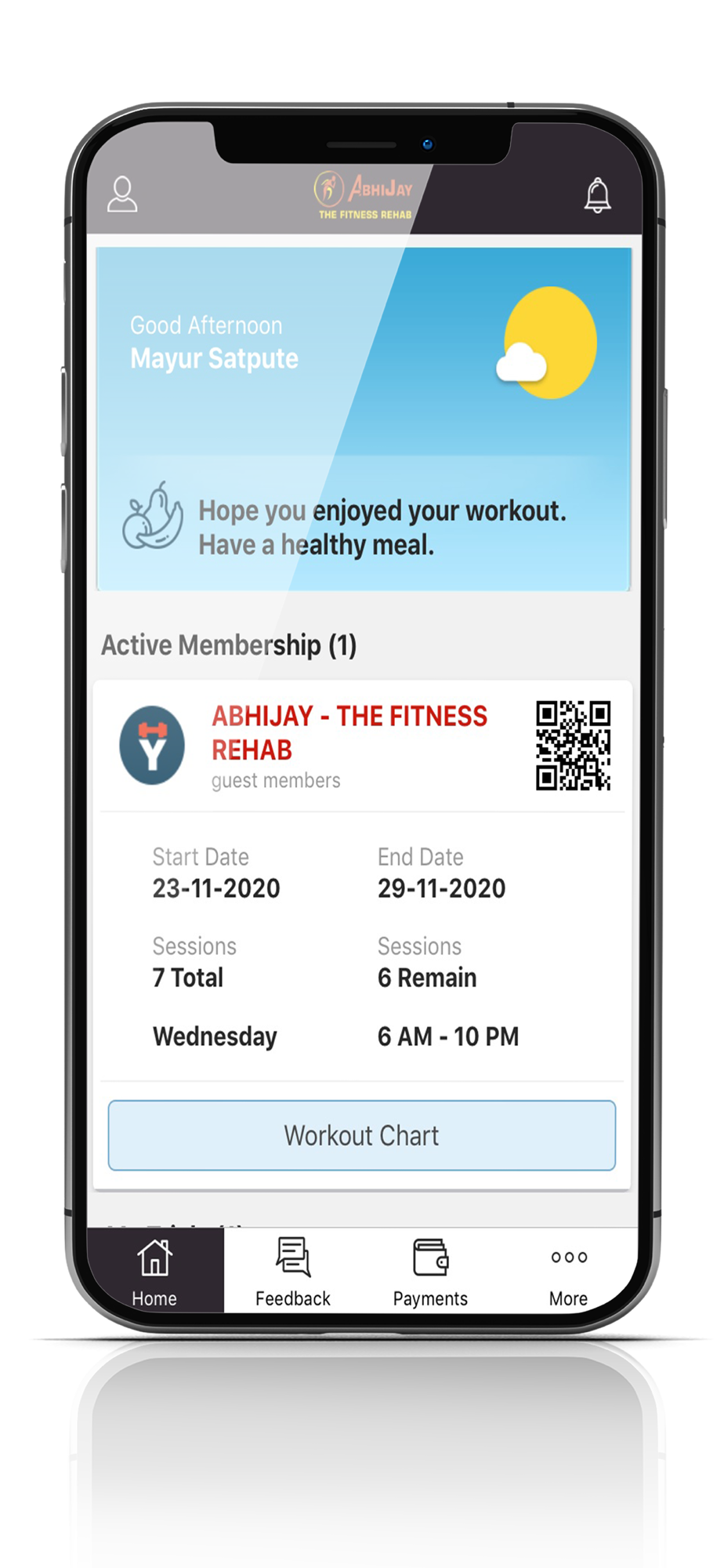 Abhijay Member application assists in keeping a track on all the members and their individual daily work-out regimes.
