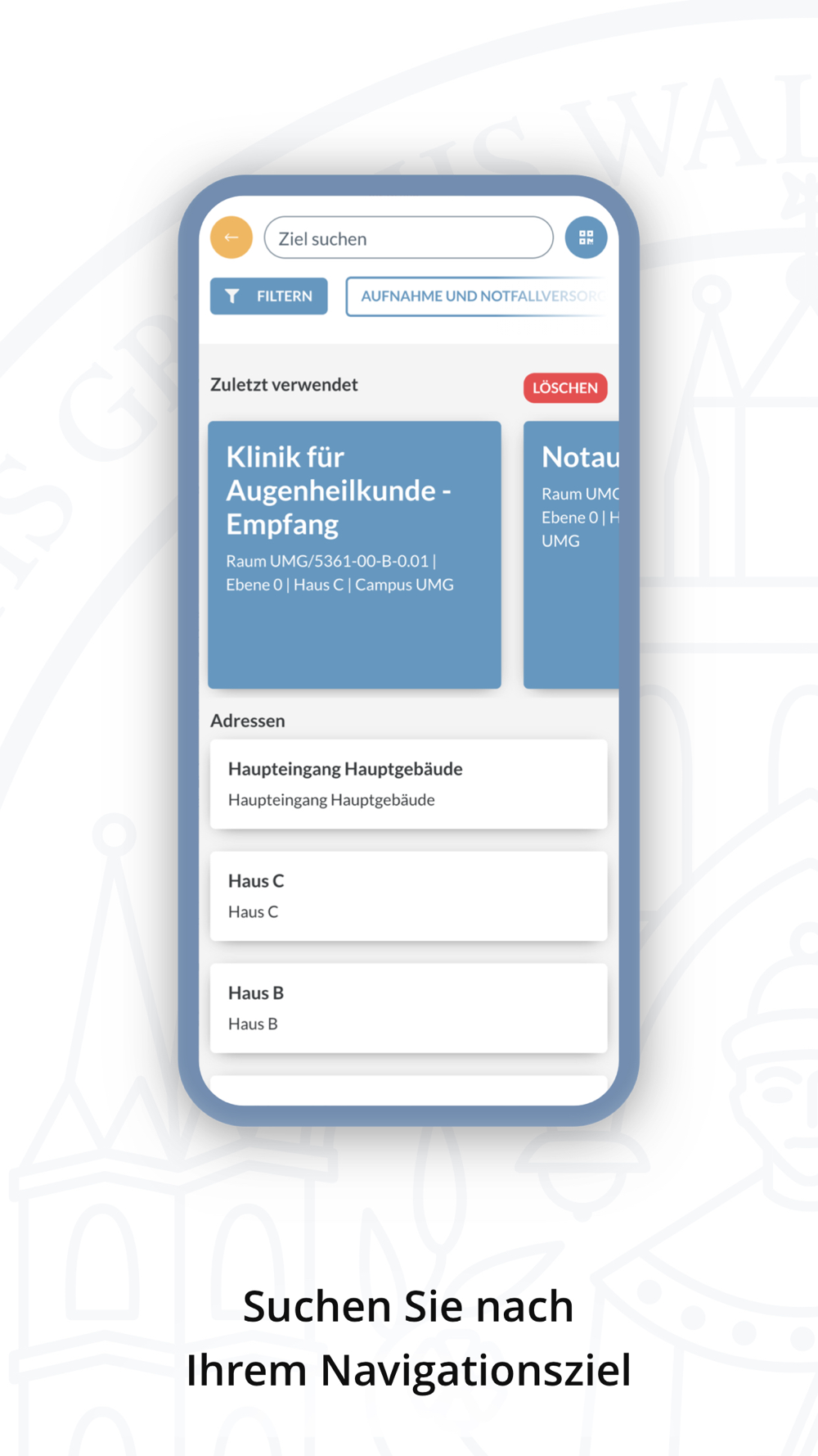 Mit unserer UM Greifswald App können Sie sich von Zuhause bis zu Ihrem Terminort am Klinikum navigieren lassen. Wenn Sie mit dem Auto unterwegs sind, führen wir Sie zuerst zur Parkfläche, bevor es über unseren Campus in unser Klinikum geht.