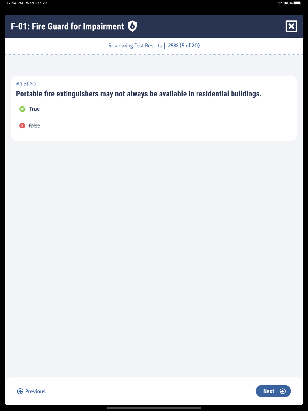 Our instructors have helped thousands of clients prepare for and pass the F-01 exam. We have created a bank of 100 questions that are similar in design and difficulty to the ones you will encounter when you take the actual test at the Fire Department of New York. Just like the FDNY certificate of fitness exam, this app will randomly generate 20 multiple choice questions each time you take the practice test and will allow you 30 minutes to complete the test. You can take it as many times as you like.