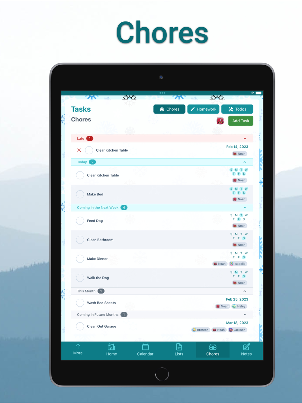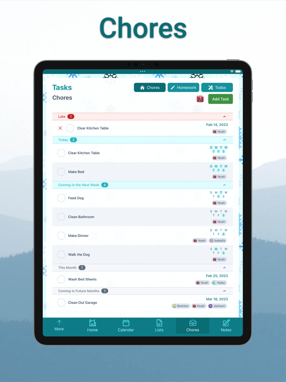 - Bring the power of calendar, chores, homework, todo’s, and list items together