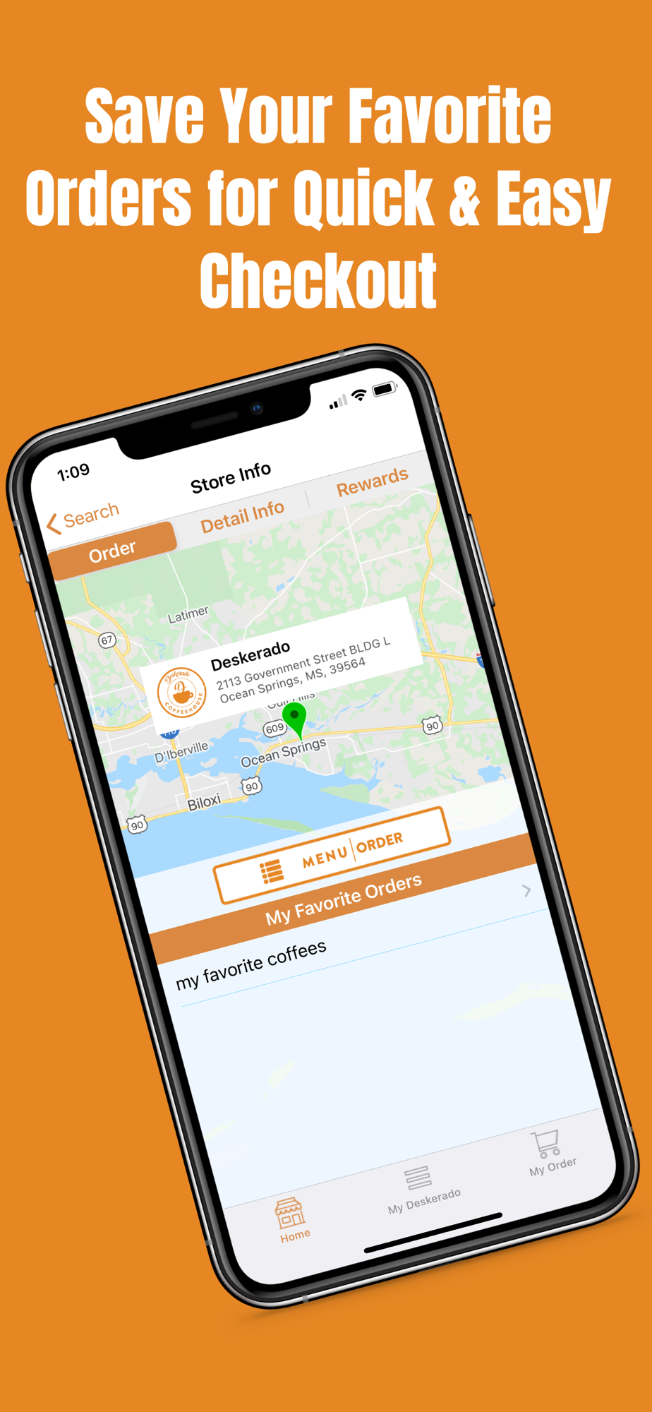 The Deskerado® app allows you to order ahead for takeout as well as join our loyalty program, receive promotions, store your favorite orders and more!