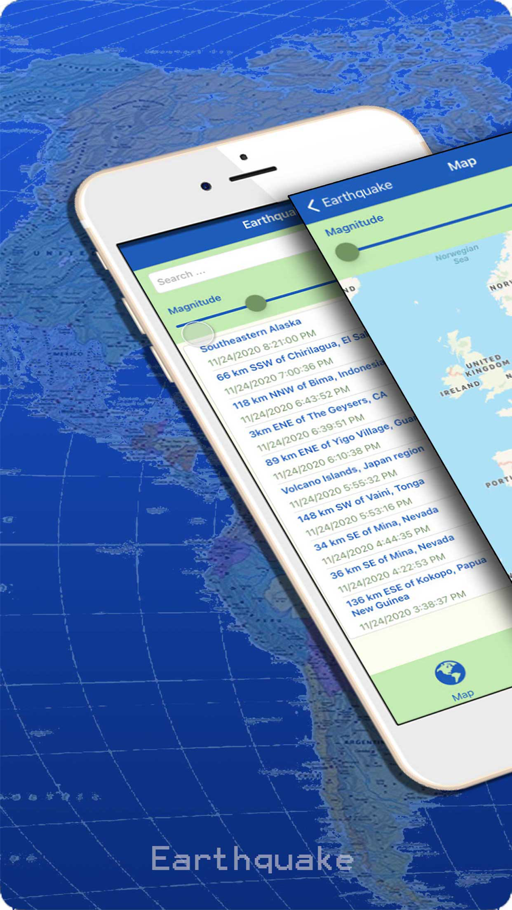 List Earthquakes in real time with maps.