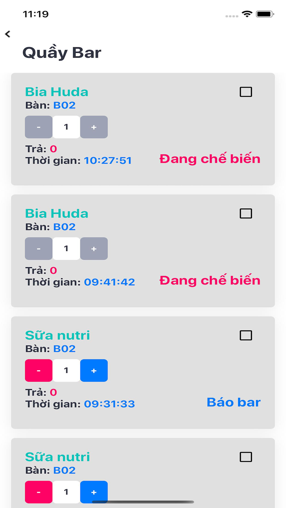 - Perform functions of ordering, reporting kitchen, processing, receiving information on food status, providing dishes to customers.