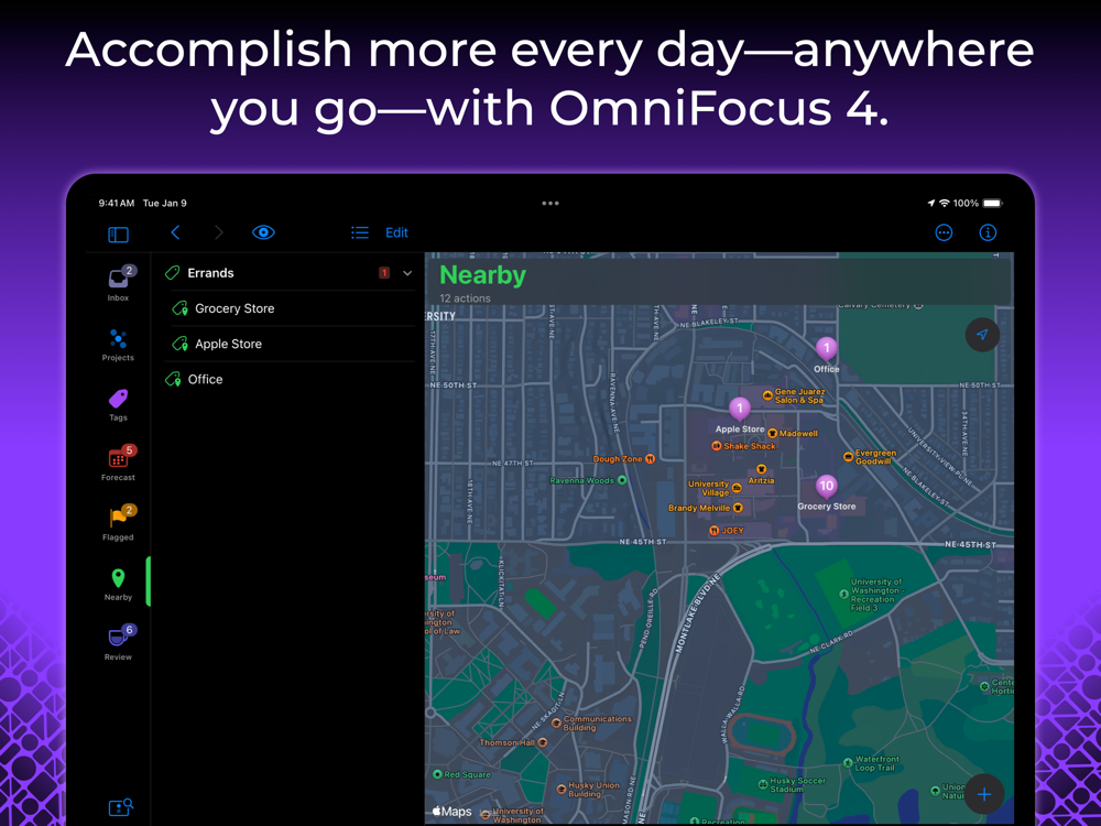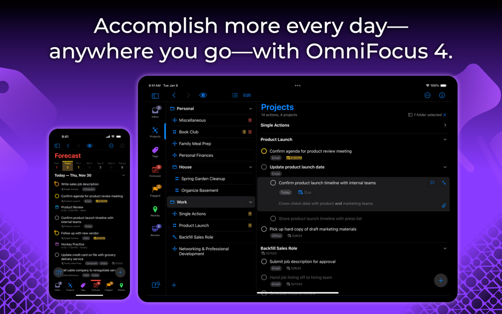 Accomplish more every day–anywhere you go–with OmniFocus 4.