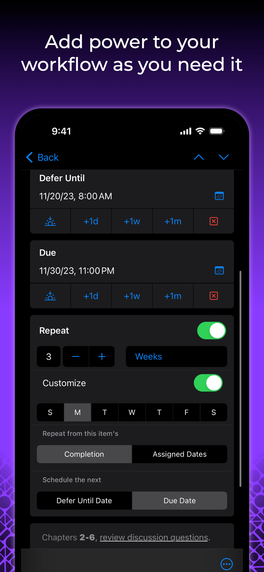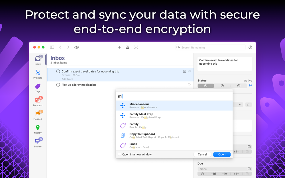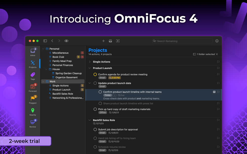Upgrading from a previous version of OmniFocus? In OmniFocus 4, discover enhanced versions of all the powerful task management features you already rely on, along with new features that will level-up your workflow.