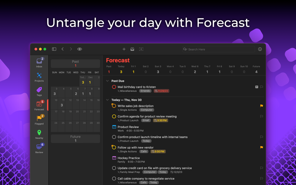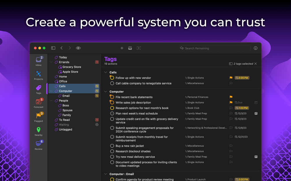 OmniFocus is powerful task management software for busy professionals. With tools to help tame the chaos, you can focus on the right tasks at the right time.