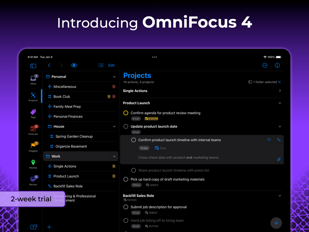 New to OmniFocus? The simple, efficient OmniFocus 4 interface will help you discover and implement a trusted system that works and grows with you.