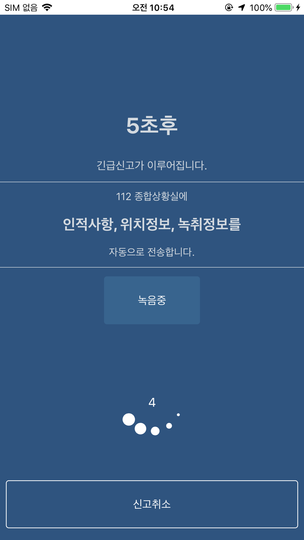 - 긴급상황에서 원터치로 112로 신고자 정보, 위치, 5초간 주위 소리를 자동 전송하여 신고.