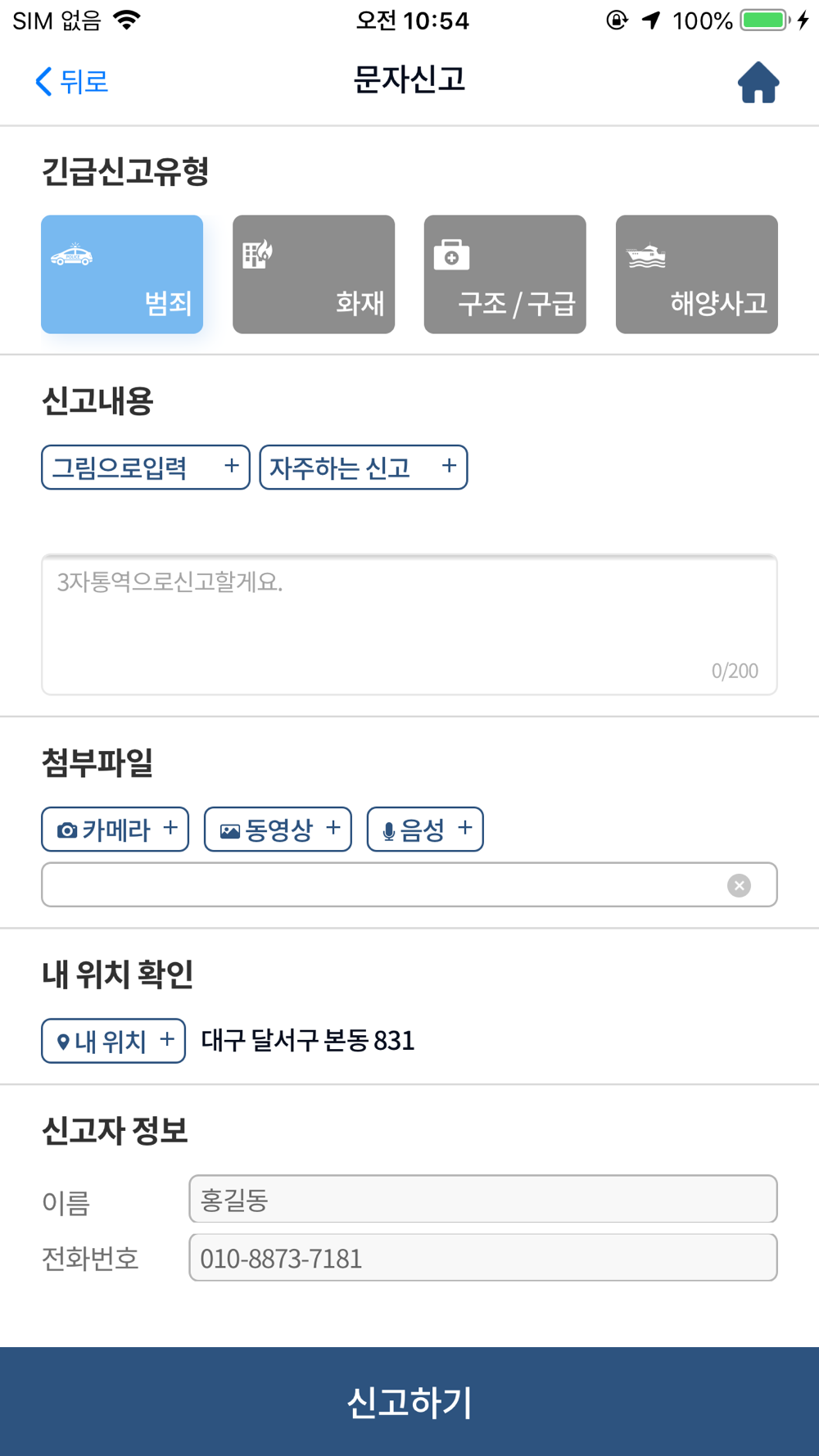 □ 문자신고 기능