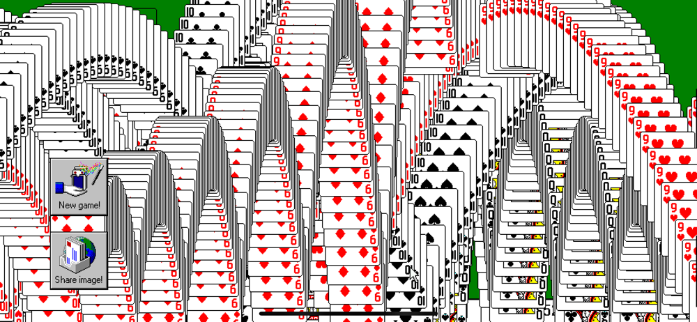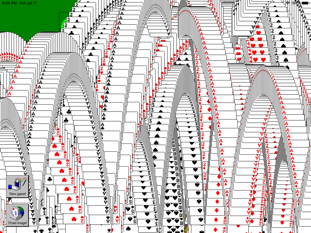 In this barren world of flat design and antialiased text, don't you long for crisp lines and just 16 well-chosen colours? We certainly do. Rustling Broccoli presents a world first on your pocket computer: Solitaire for Workgroups, like the one grandma used to play. Don't get distracted by notifications, ads, or "Dark Mode", just stick to one purpose: putting all the cards in the foundation piles. The only advantage of this game over the real deal original back in the nineties is that you can stick it in your pocket and take it with you.