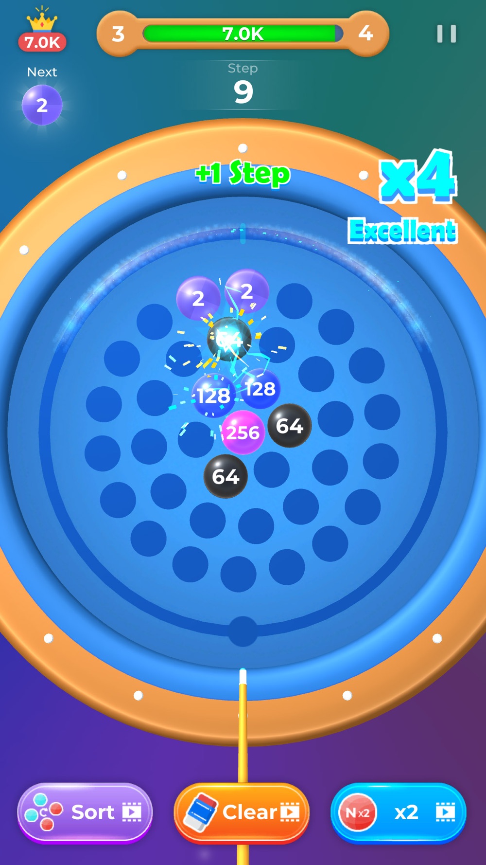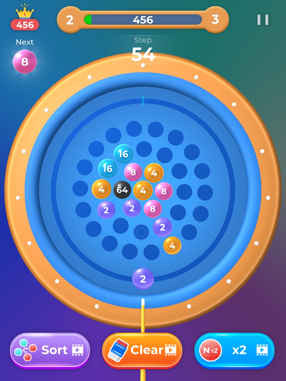 The same numbers can be combined into more advanced numbers. You can pass the level when you reach the goal.