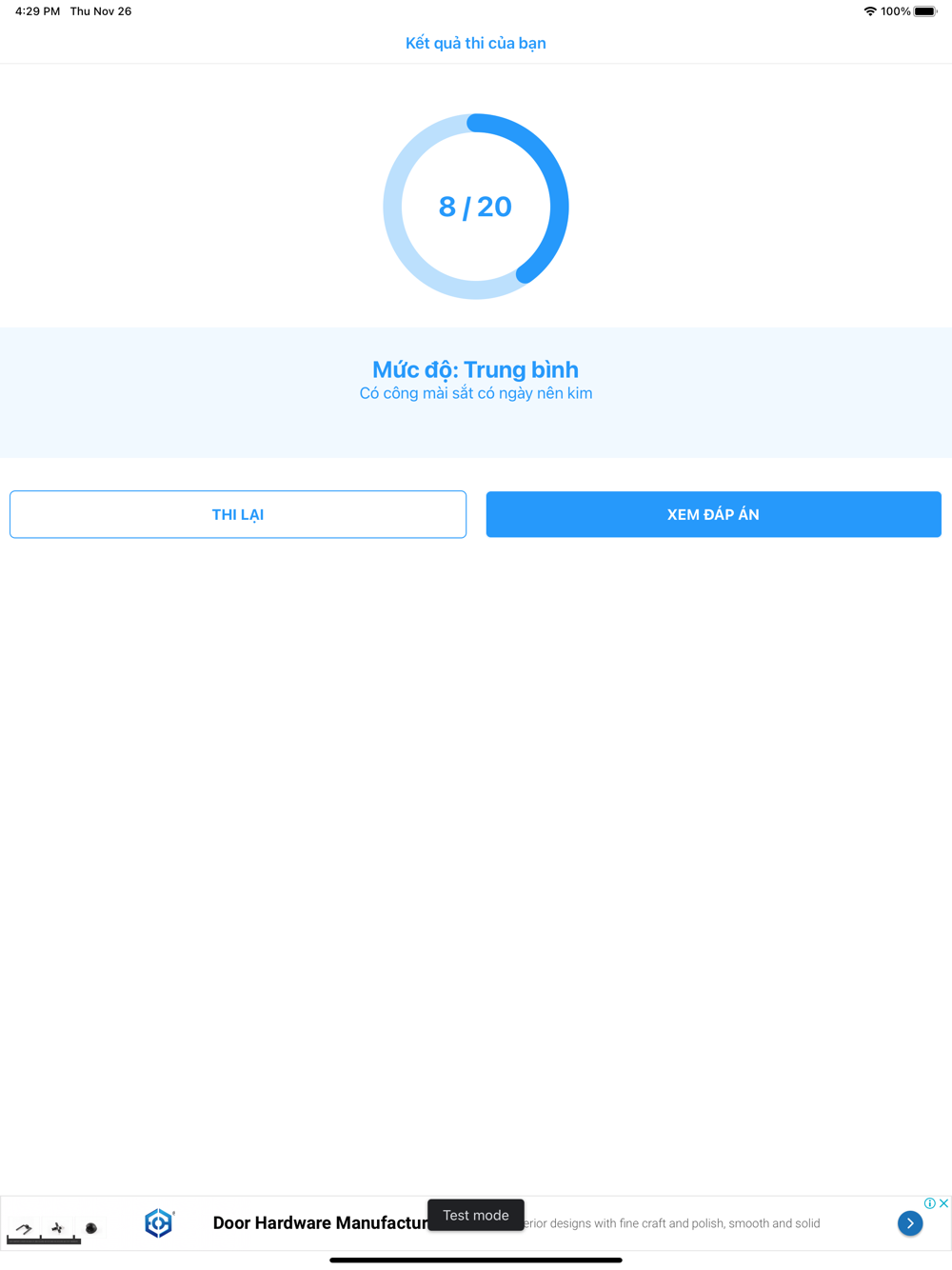 5. Hiển thị kết quả sau khi thi, cho biết số lượng câu đúng/sai, đáp án của từng câu hỏi.