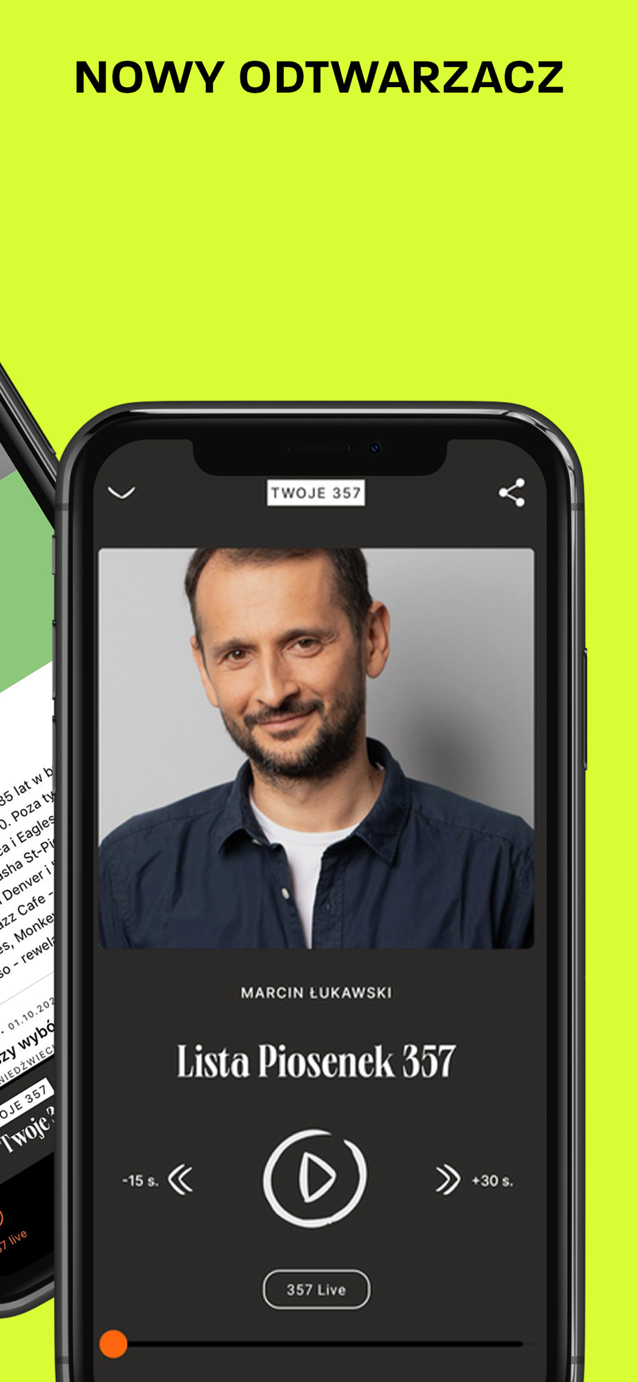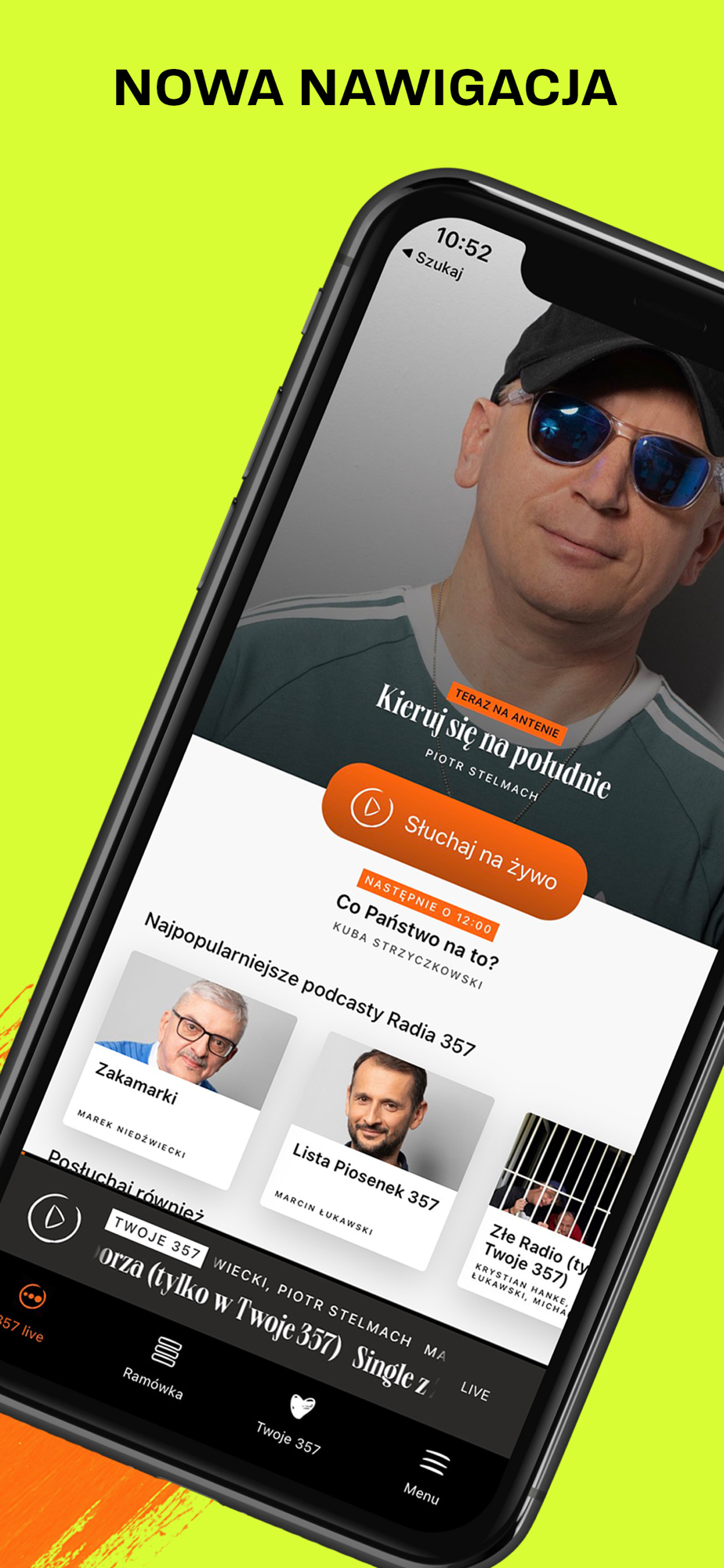 Jedyna oficjalna aplikacja Radia 357. To ambitne radio bez bloków reklamowych. Radiowe osobowości, muzyka, publicystyka, reportaż, kultura, sport i wiadomości. Zaczynaj dzień Rankiem z Marcelem. Delektuj się muzyką, którą u nas serwują Marek Niedźwiecki, Piotr Kaczkowski, Piotr Stelmach i silna ekipa redakcji muzycznej. Ernest Zozuń w Popołudniówkach podsumowuje dla Was dzien. Kuba Strzyczkowski docieka, co Państwo na to. Ulubieni artyści w nietypowej roli prowadzących? To też u nas! W naszym studiu swoje muzyczne wybory prezentują dla Was m.in. Ralph Kaminski, Tomasz Organek, Krzysztof Zalewski, Baasch, a w podcastach Daria Zawiałow, Edyta Bartosiewicz, Kwiat Jabłoni i inni. Właśnie - podcasty! Jest w czym wybierać. Mnóstwo propozycji dla wymagających - ze znakiem jakości Radia 357. Zainstaluj , załóż konto Twoje 357 i rozgość się na dłużej!