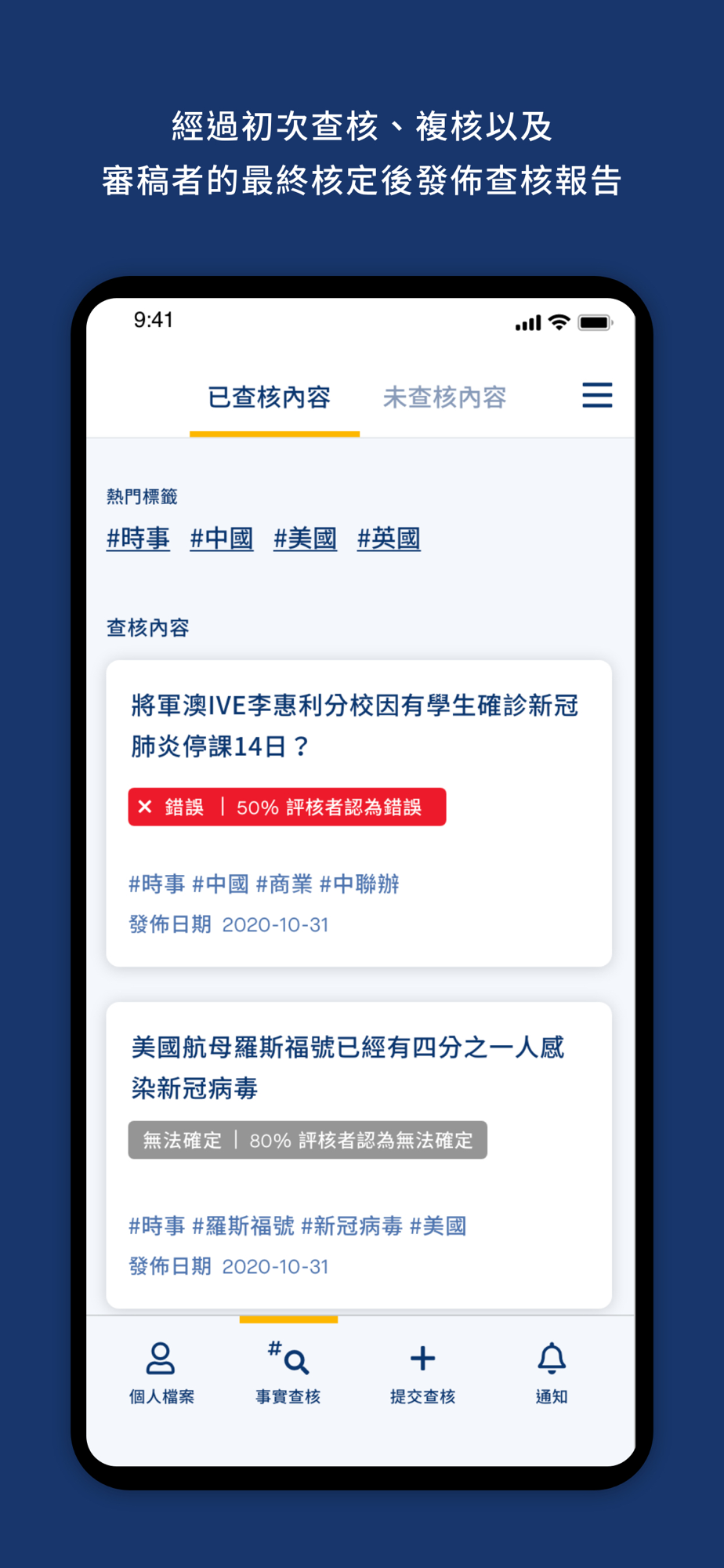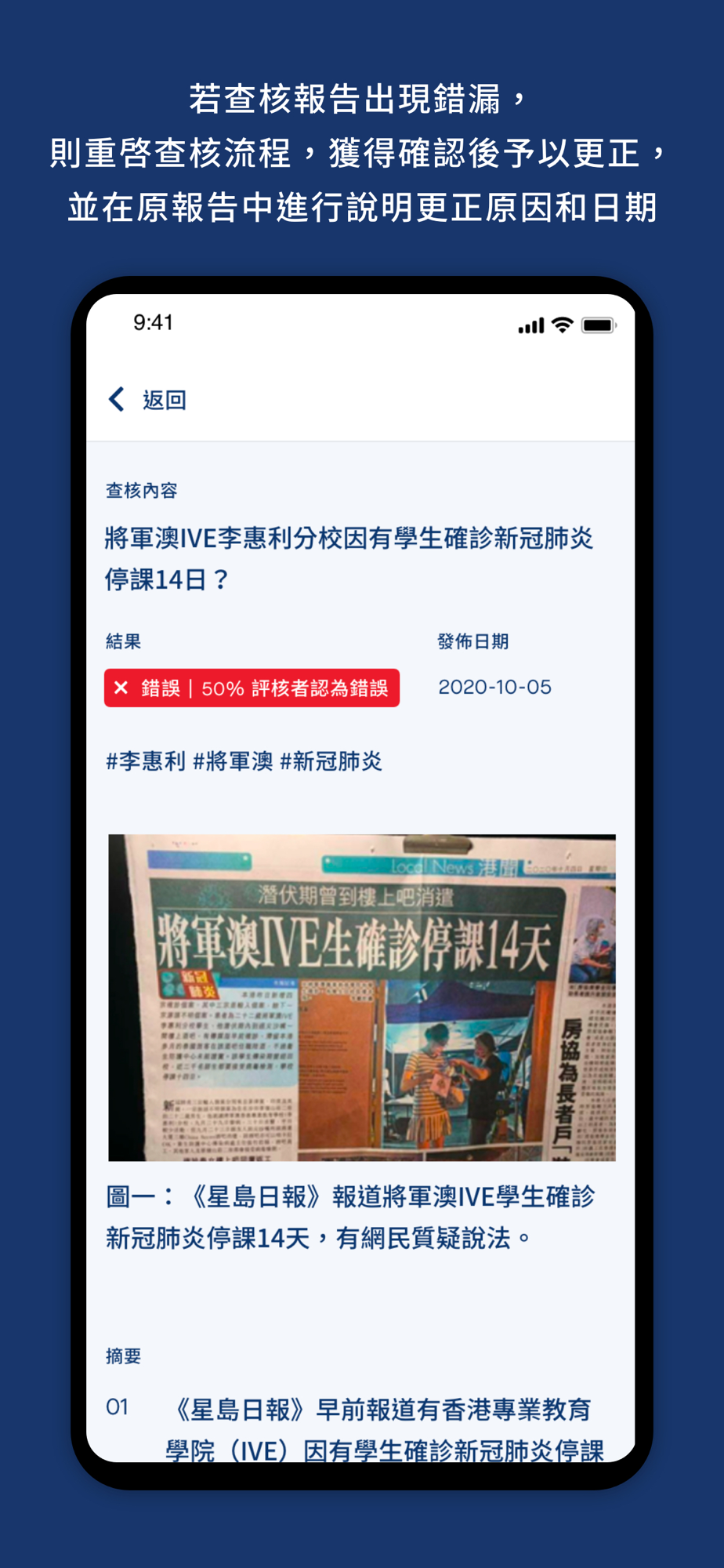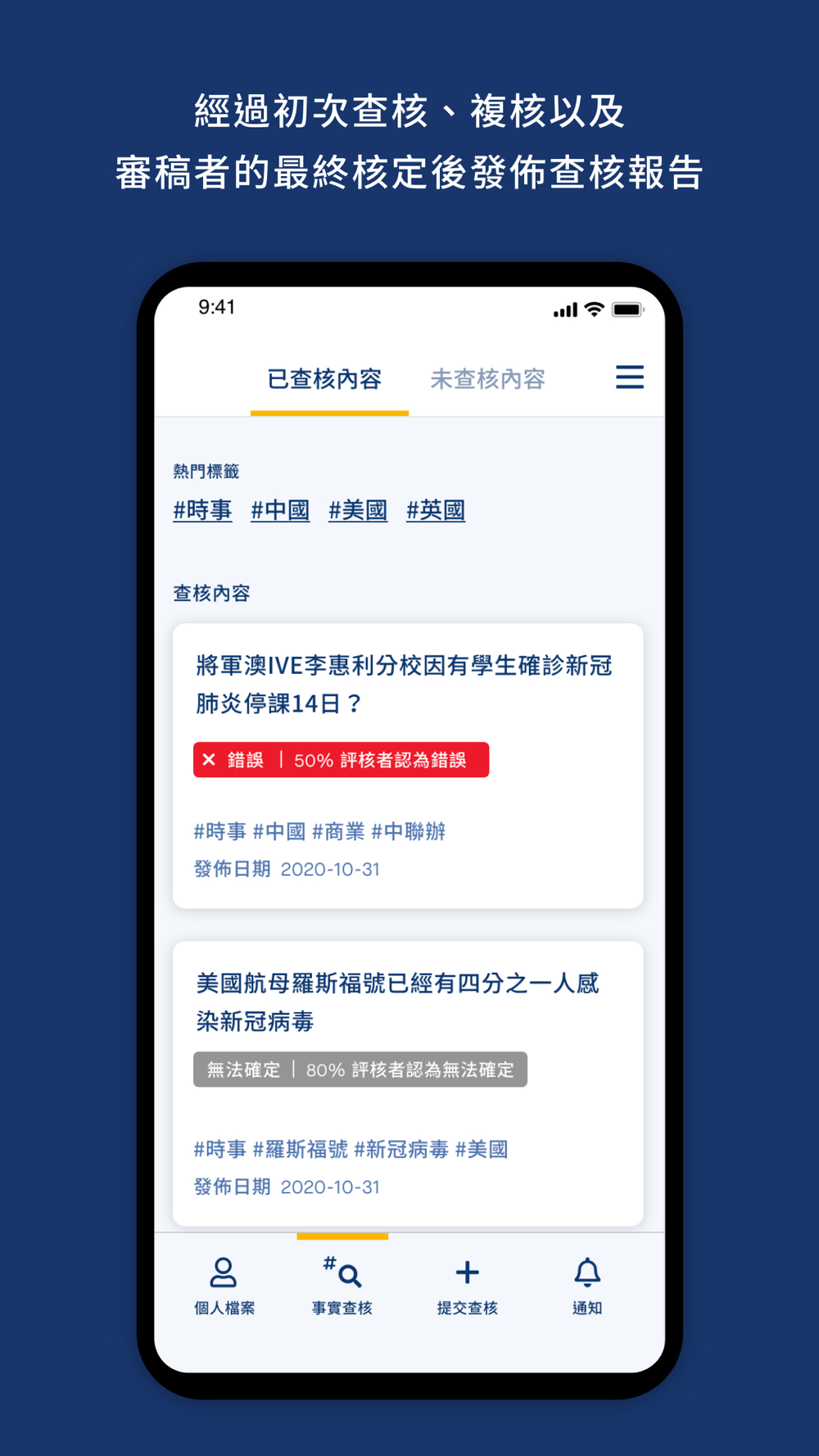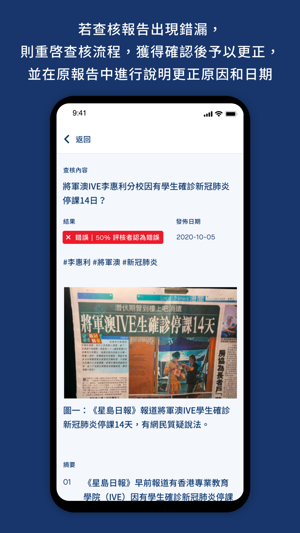 【Fact-Checking Verdict】Invited users can make a verdict via the app on the suspicious content posted by FCS. This can be done by classifying it as “True,” “Partially True,” “False,” or “Unsubstantiated.” The verdicts entered will be summarized and displayed on the app in real time.