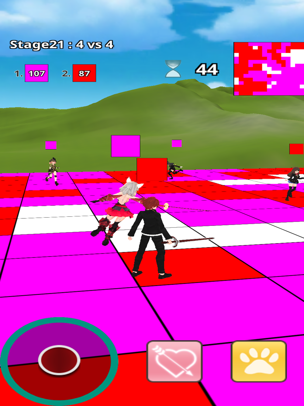 Paint the floor with your own color using attack, jump and moves