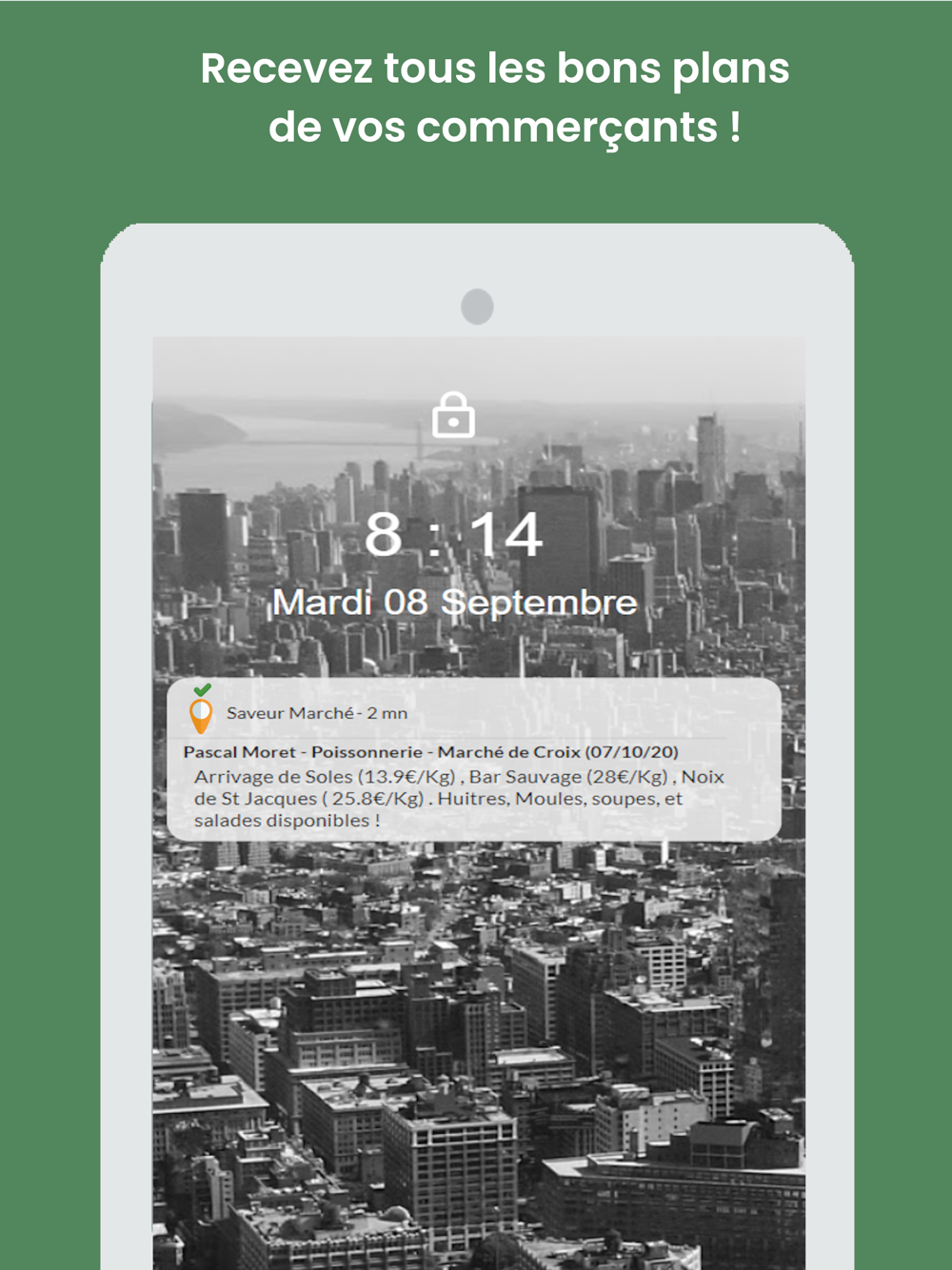 Rejoins la communauté Saveur Marché, et découvres une nouvelle façon de communiquer avec tes commerçants favoris, de recevoir de manière simple les différentes promotions proposées, et de rester informé pour toutes les activités ou évènements proposés.