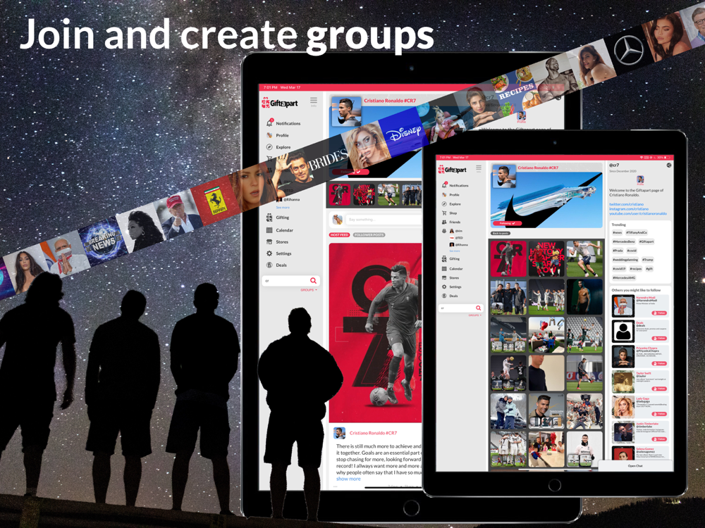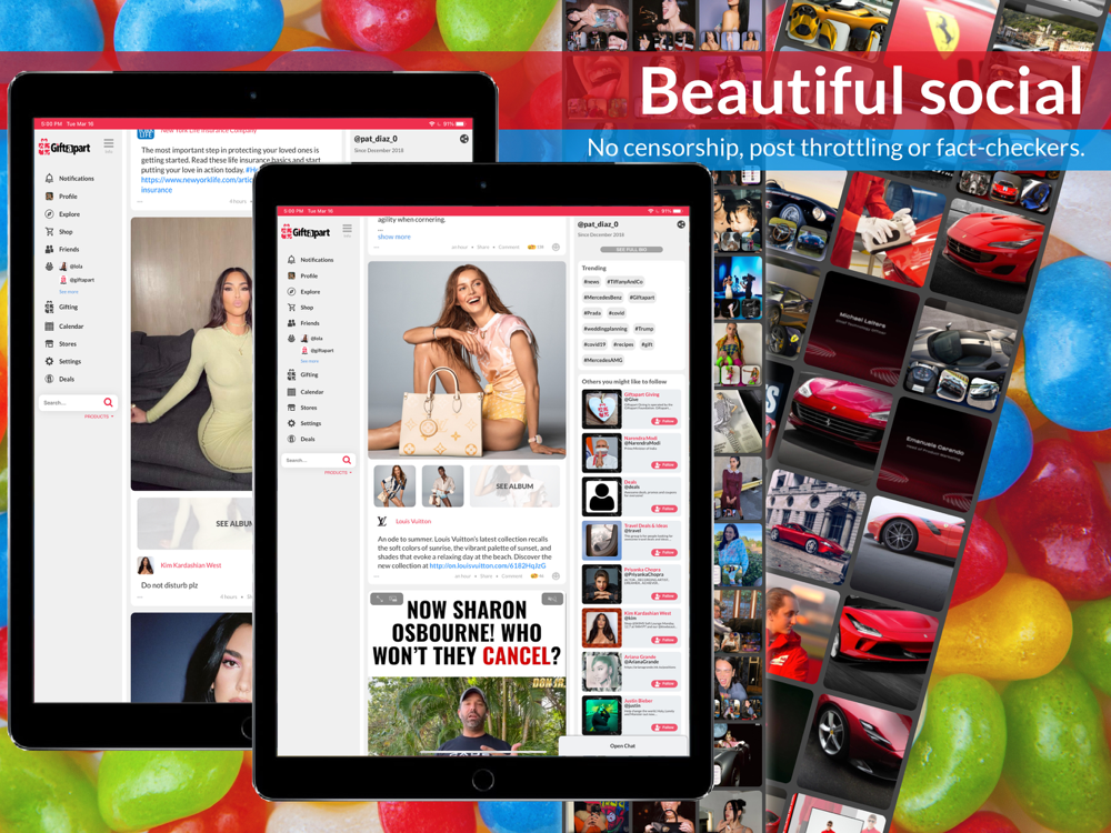 FULL SOCIAL MEDIA BUILT-IN! Private & secure. Giftapart never sells your info or data to anyone. No political censorship and easy cross-share to other social medias, like Facebook and Twitter. Make groups so others can easily follow you.