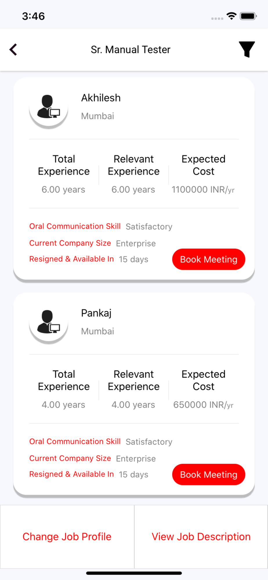 You can choose profiles based on various factors such as CTC, experience level, expertise, etc.