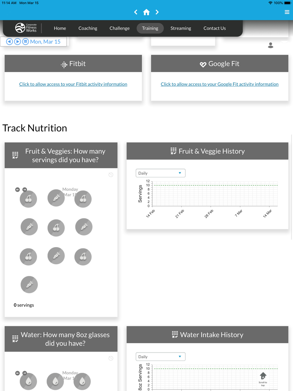 The CFW Virtual App can be configured to connect to Apple Health to link your data to the CFW Virtual Wellness Platform. Please contact your site administrator for more details.