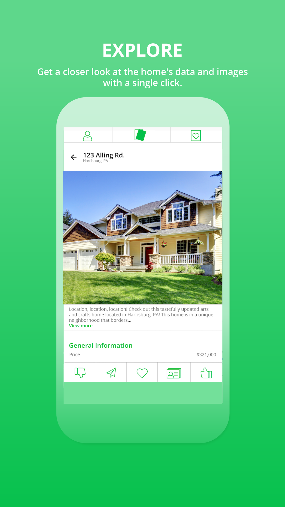• Swipeable interface allows for seeing more homes and quickly establishing your preferences